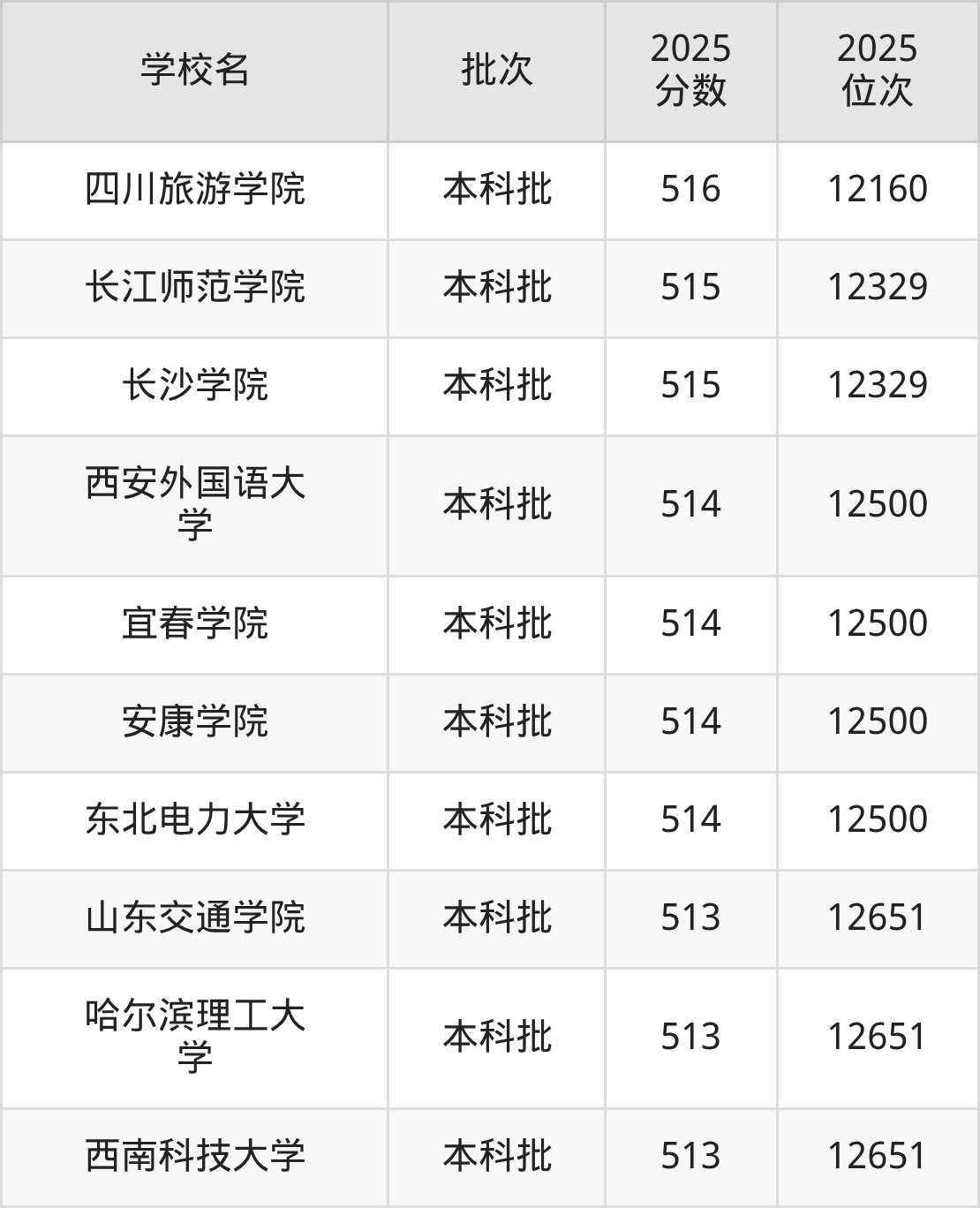 这些都是2026年高考历史类12007名~12160名考生可以报考的大学,更多学校名单如下表所示: