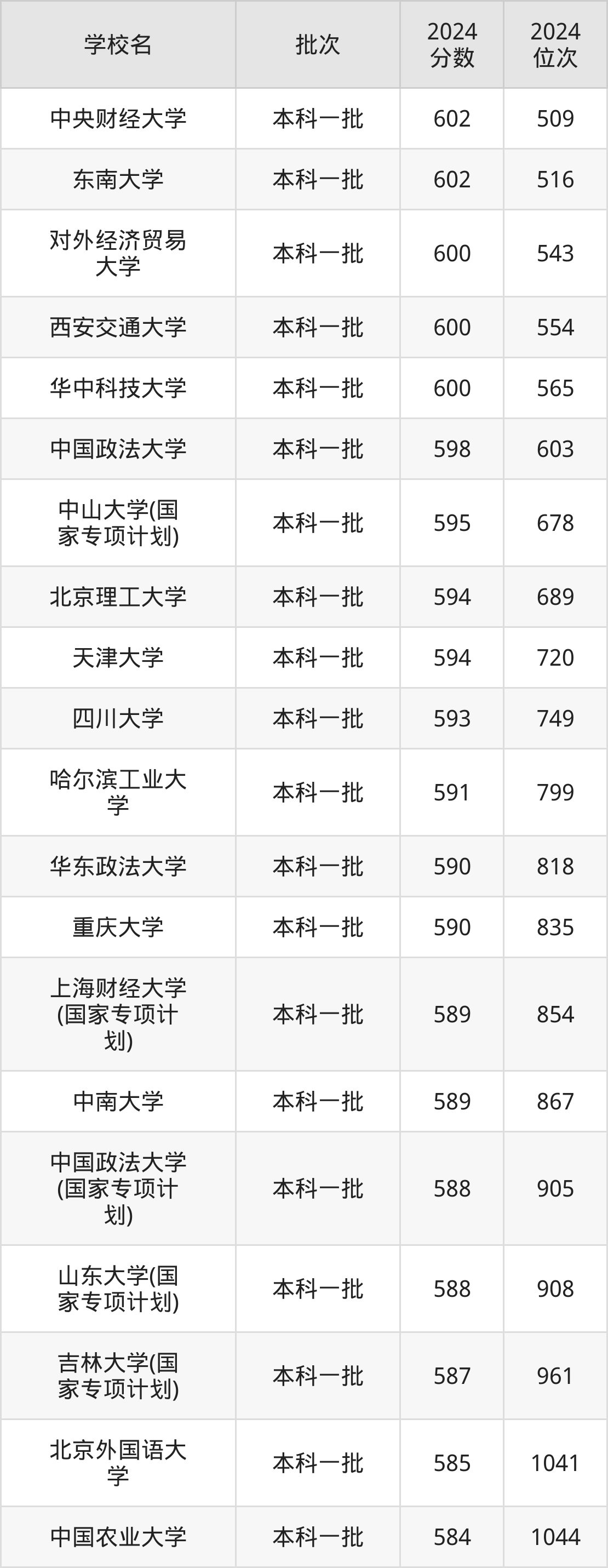 这些都是2025年高考文科998名~1041名考生可以报考的大学,更多学校名单如下表所示:
