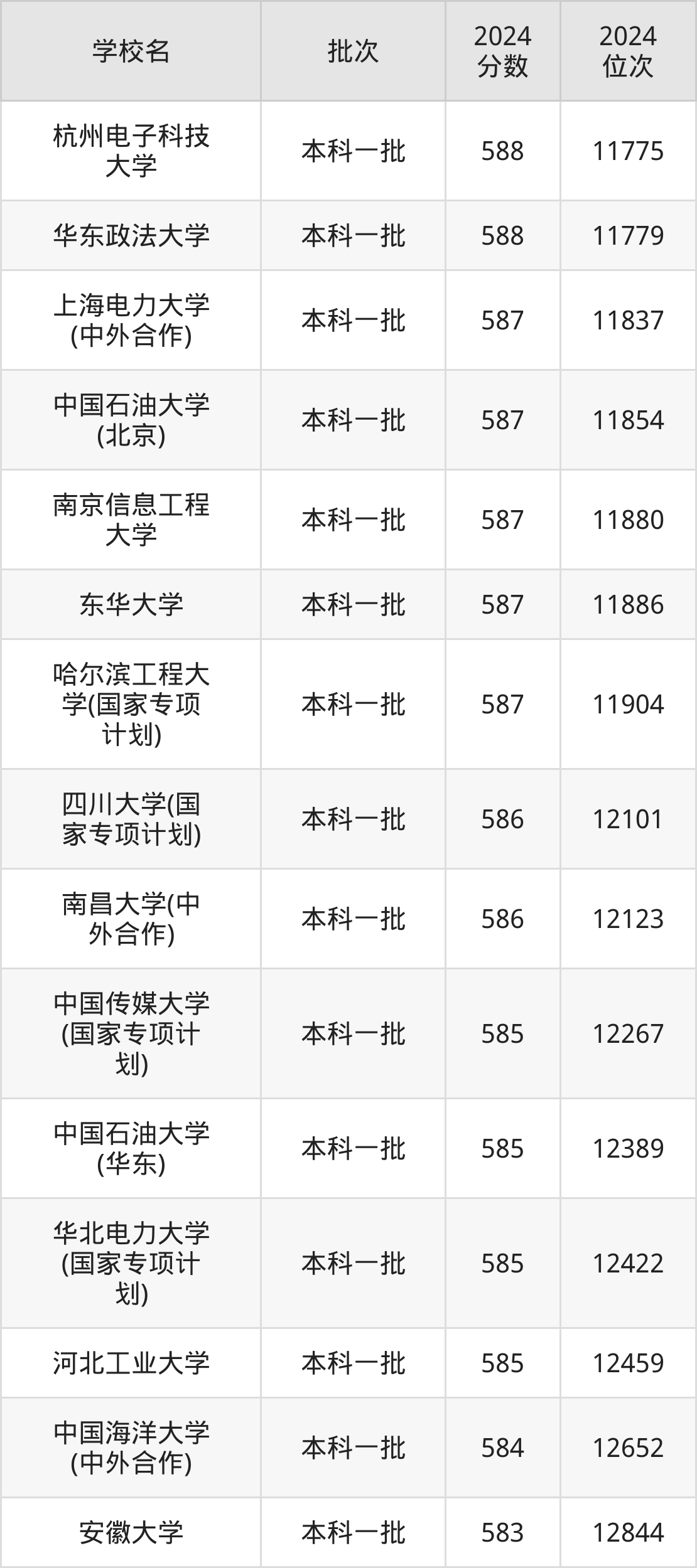 这些都是2025年高考理科12231名~12471名考生可以报考的大学,更多学校名单如下表所示: