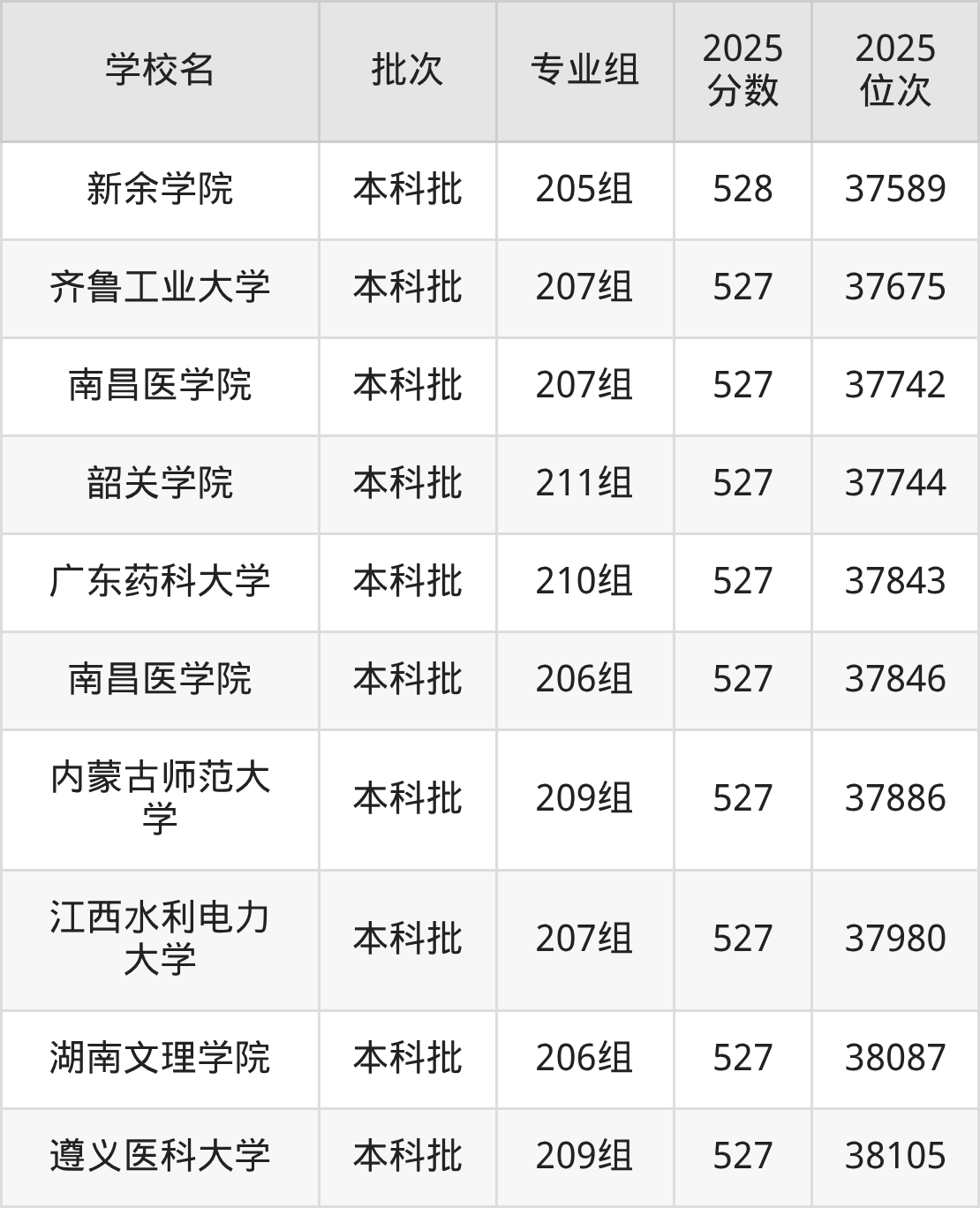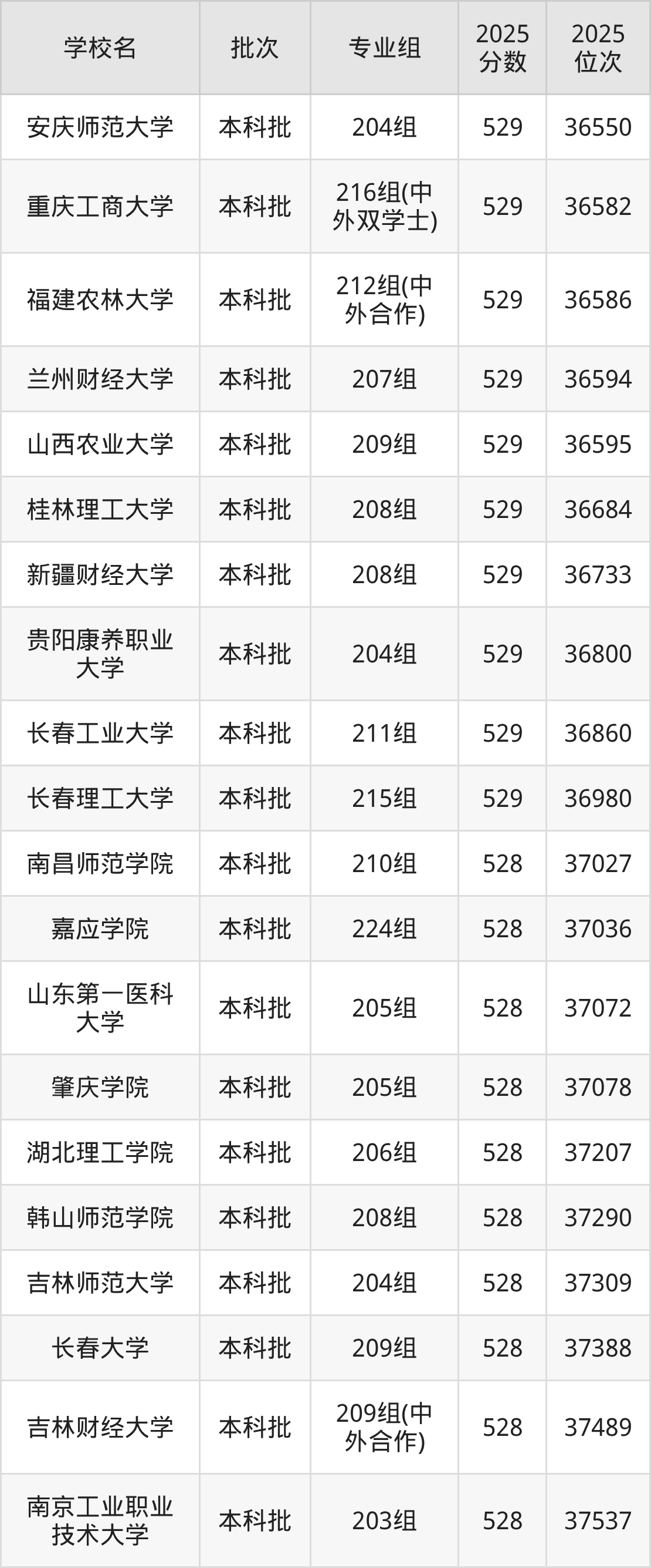 2025年广东高考历史类528分(37000名~37634名)能上的大学有吉林师范大学204组、吉林财经大学209组(中外合作)、山东第一医科大学205组、韩山师范学院208组等。