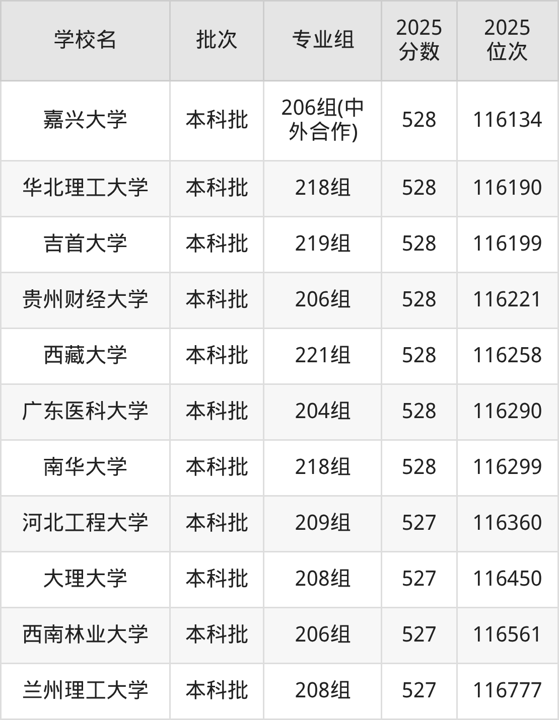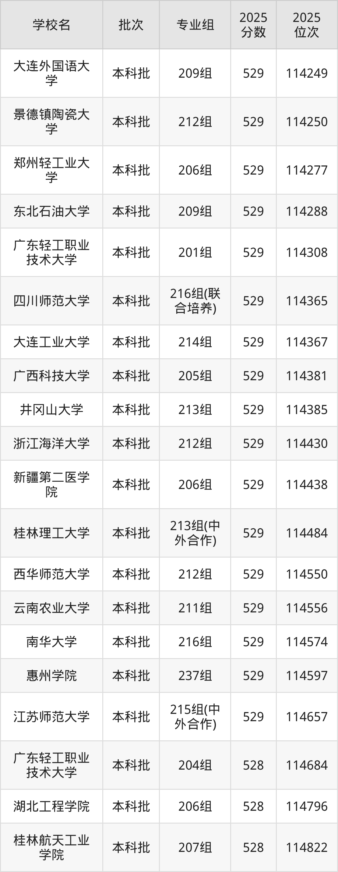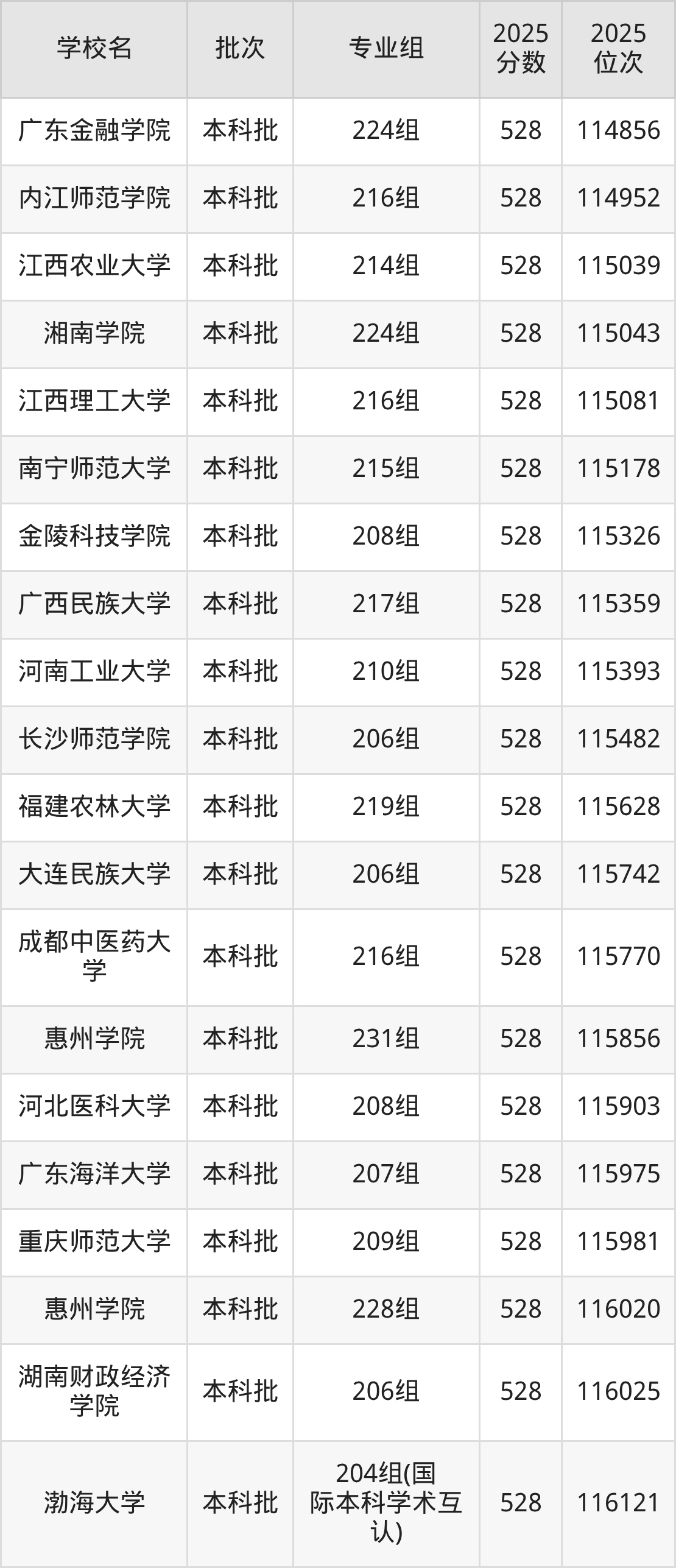 2025年广东高考物理类528分(114678名~116332名)能上的大学有华北理工大学218组、河北医科大学208组、渤海大学204组(国际本科学术互认)、嘉兴大学206组(中外合作)等。