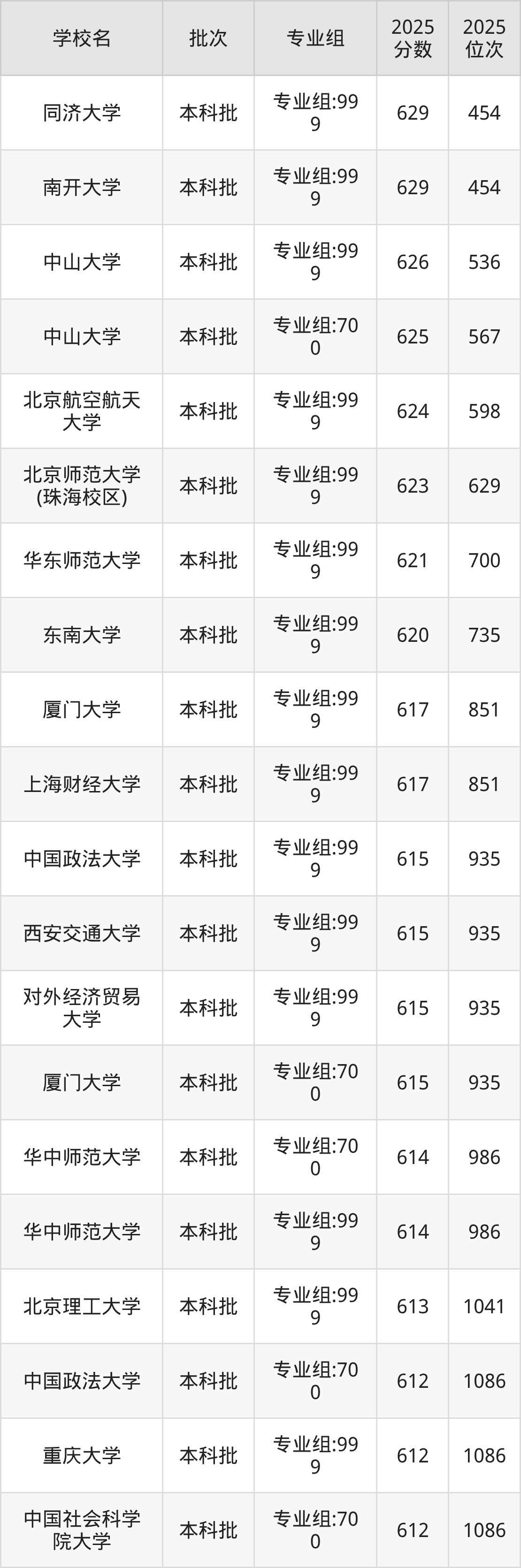 另外录取位次低于该区间(较稳妥)的有北京理工大学专业组:999(1041名)、中国政法大学专业组:700(1086名)等;录取位次高于该区间(可冲)的有中国政法大学专业组:999(935名)、西安交通大学专业组:999(935名)等。