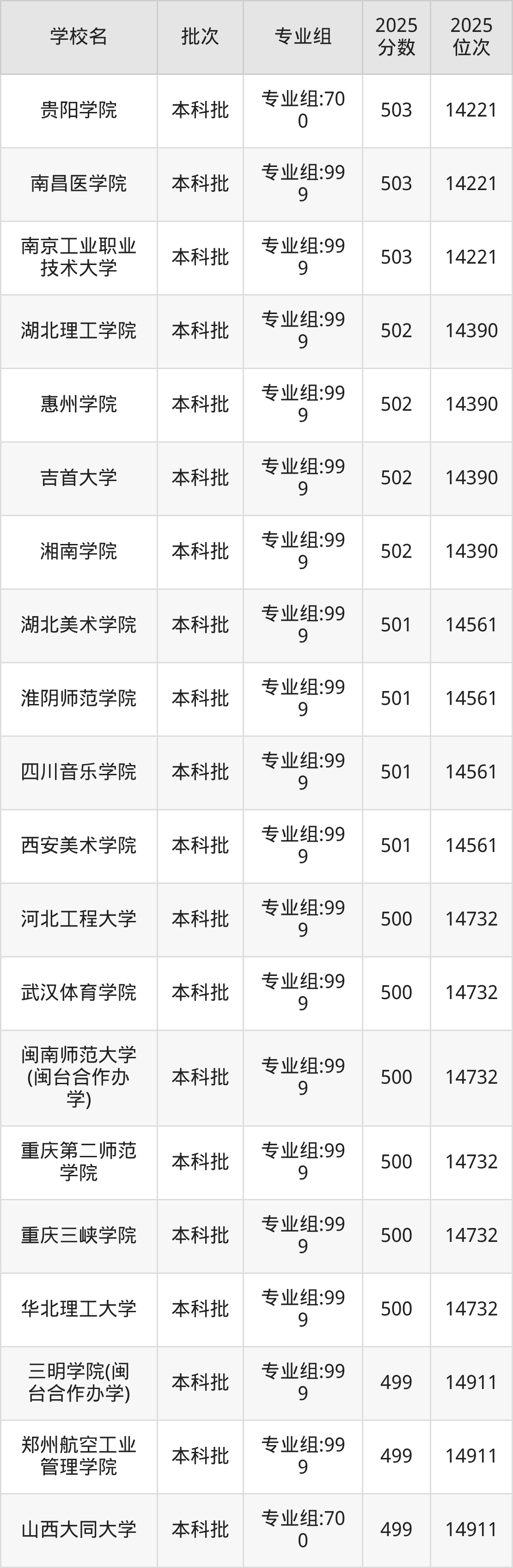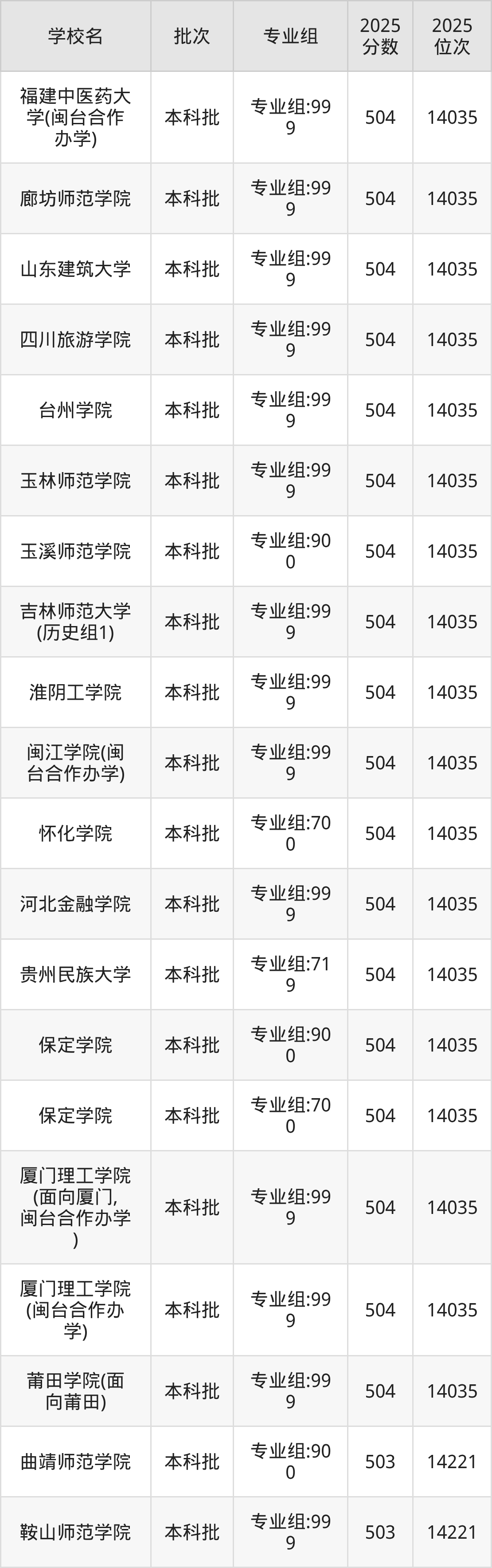 这些都是2026年高考历史类14391名~14561名考生可以报考的大学,更多学校名单如下表所示: