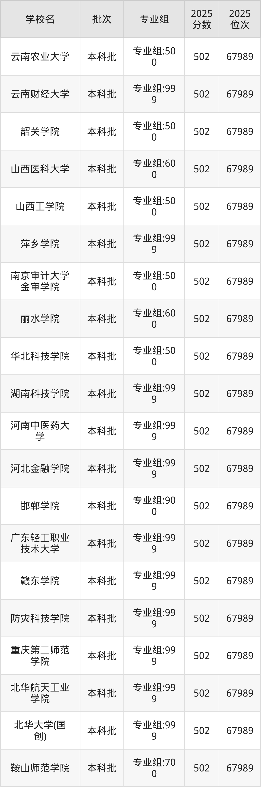 这些都是2026年高考物理类67990名~68791名考生可以报考的大学,更多学校名单如下表所示: