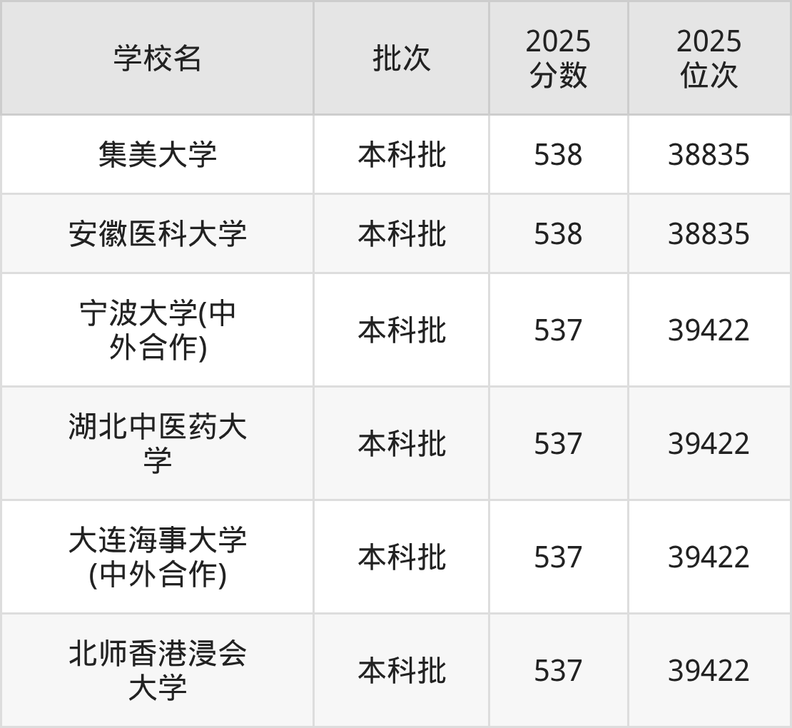 2025年重庆高考物理类537分(38836名~39422名)能上的大学有北师香港浸会大学、宁波大学(中外合作)、大连海事大学(中外合作)、湖北中医药大学。