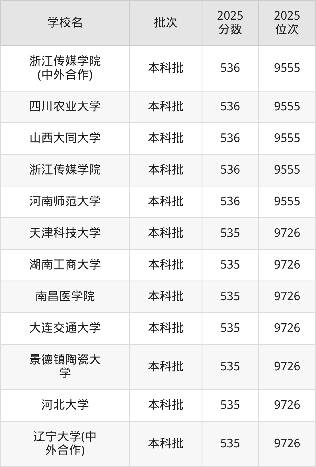 这些都是2026年高考历史类9203名~9363名考生可以报考的大学,更多学校名单如下表所示: