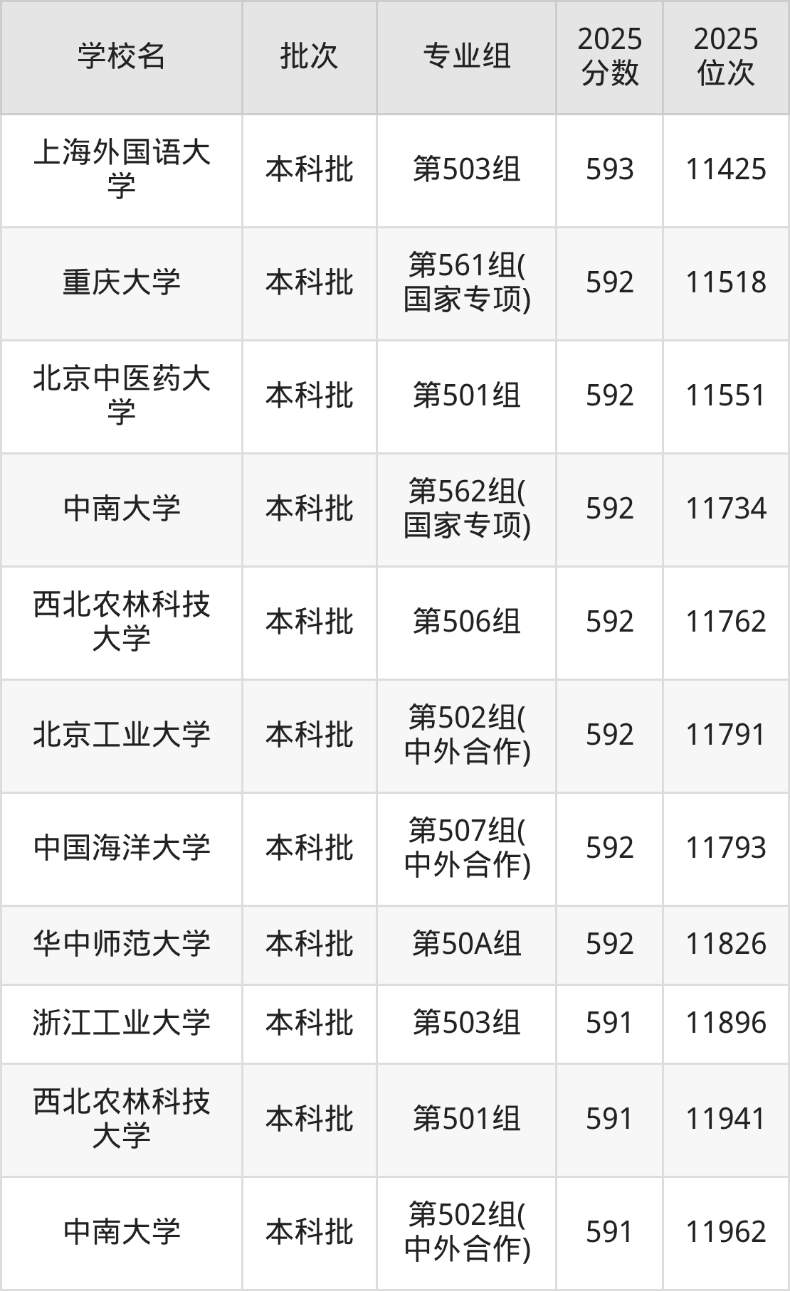 另外录取位次低于该区间(较稳妥)的有重庆大学第561组(国家专项)(11518名)、北京中医药大学第501组(11551名)等;录取位次高于该区间(可冲)的有中央财经大学第561组(国家专项)(11047名)、上海交通大学医学院第503组(10960名)等。
