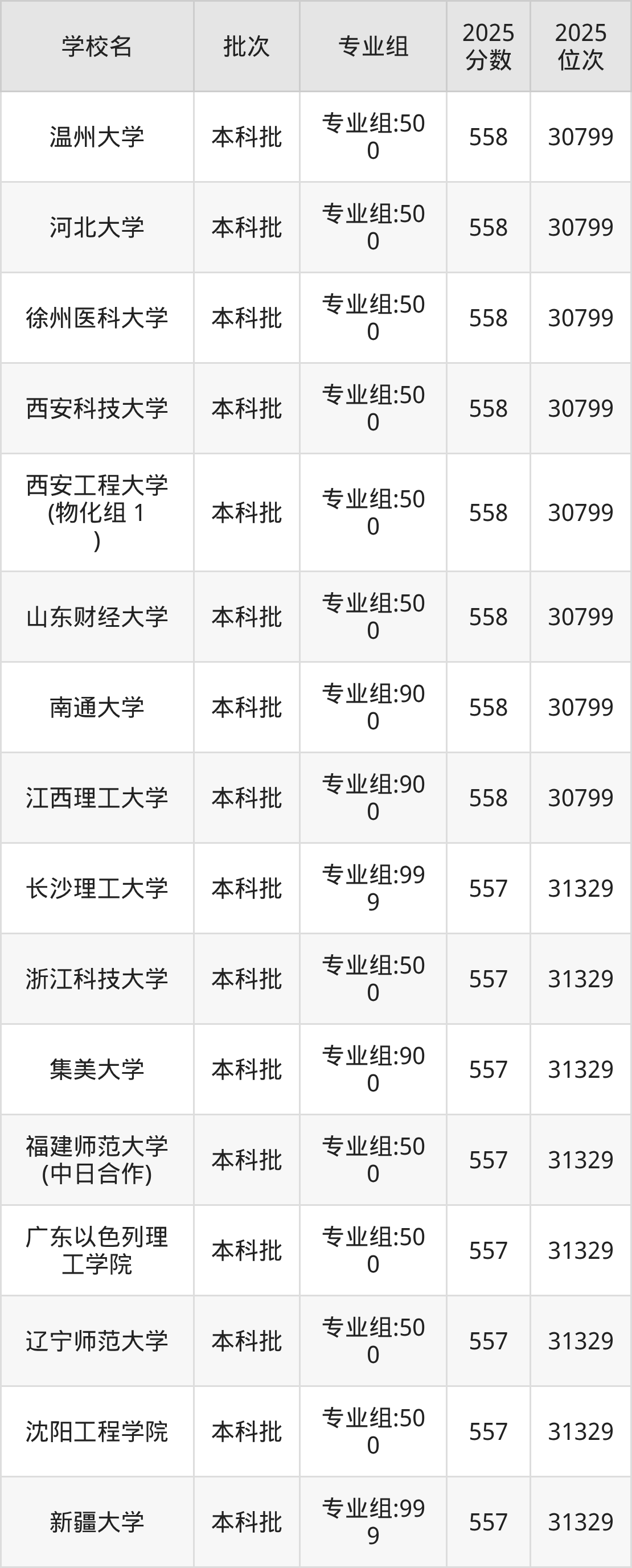 这些都是2026年高考物理类30800名~31329名考生可以报考的大学,更多学校名单如下表所示: