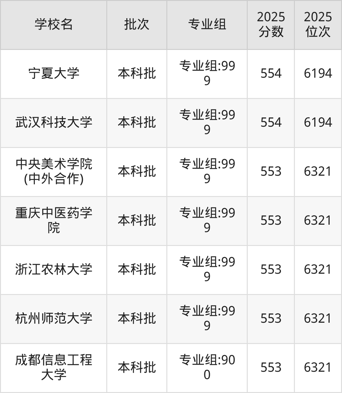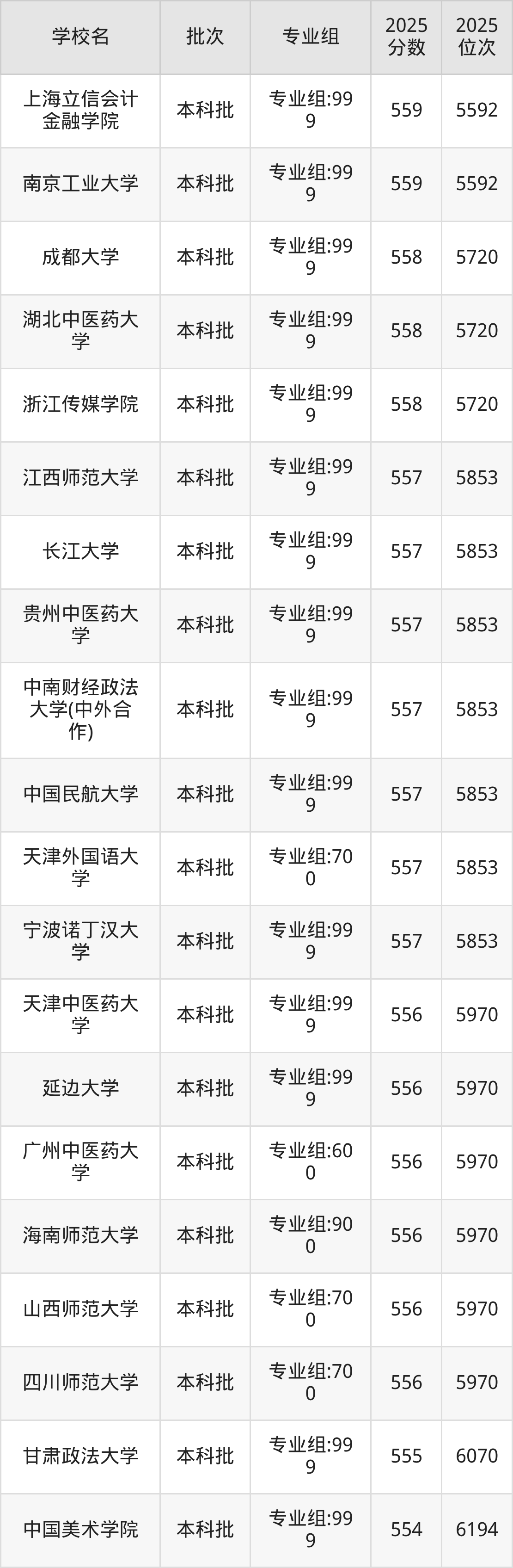 这些都是2026年高考历史类5721名~5853名考生可以报考的大学,更多学校名单如下表所示: