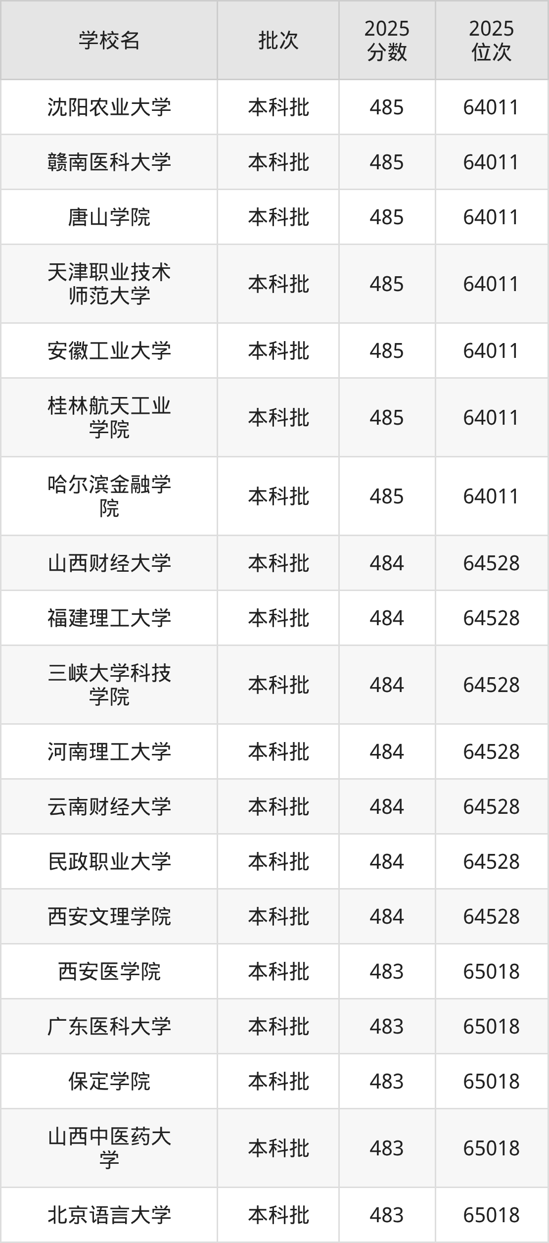 2025年辽宁高考物理类484分(64012名~64528名)能上的大学有西安文理学院、民政职业大学、云南财经大学、河南理工大学等。