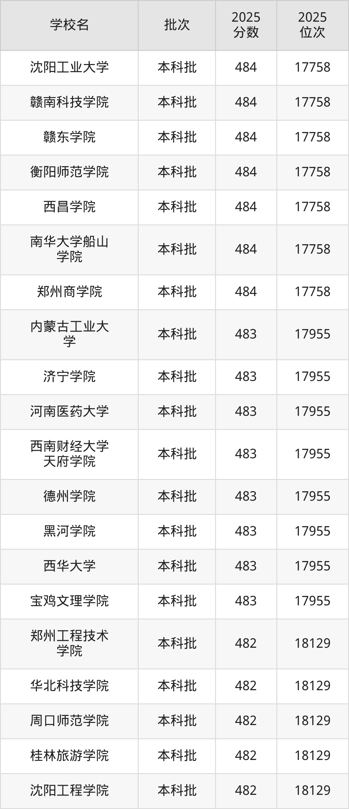 2025年辽宁高考历史类484分(17598名~17758名)能上的大学有赣南科技学院、沈阳工业大学、郑州商学院、南华大学船山学院等。
