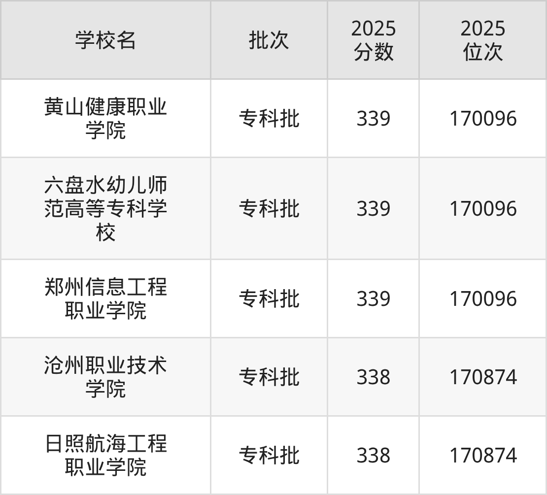 2025年河北高考历史类338分(170097名~170874名)能上的大学有日照航海工程职业学院、沧州职业技术学院。