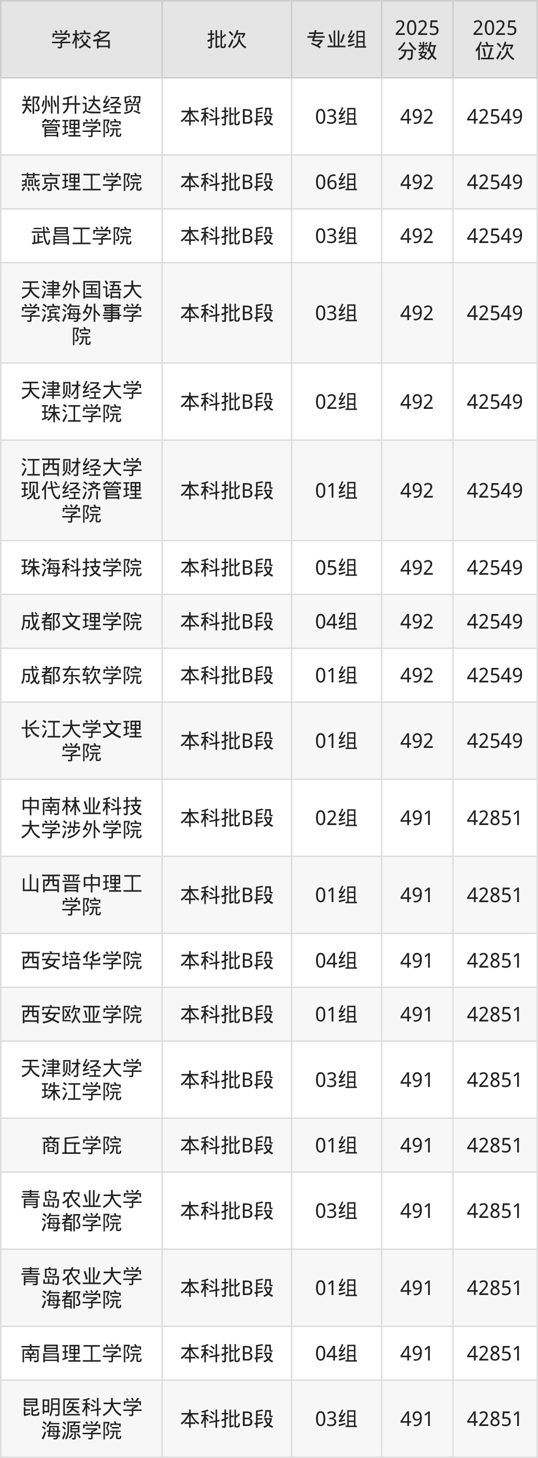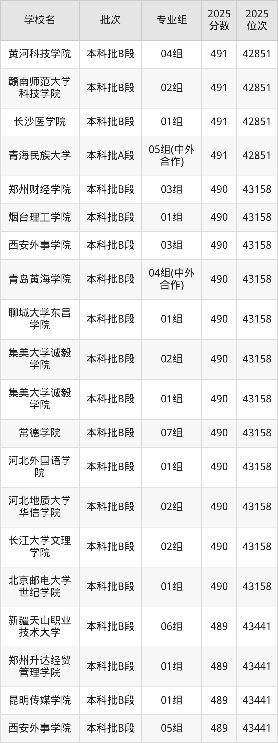 这些都是2026年高考42852名~43158名考生可以报考的大学,更多学校名单如下表所示: