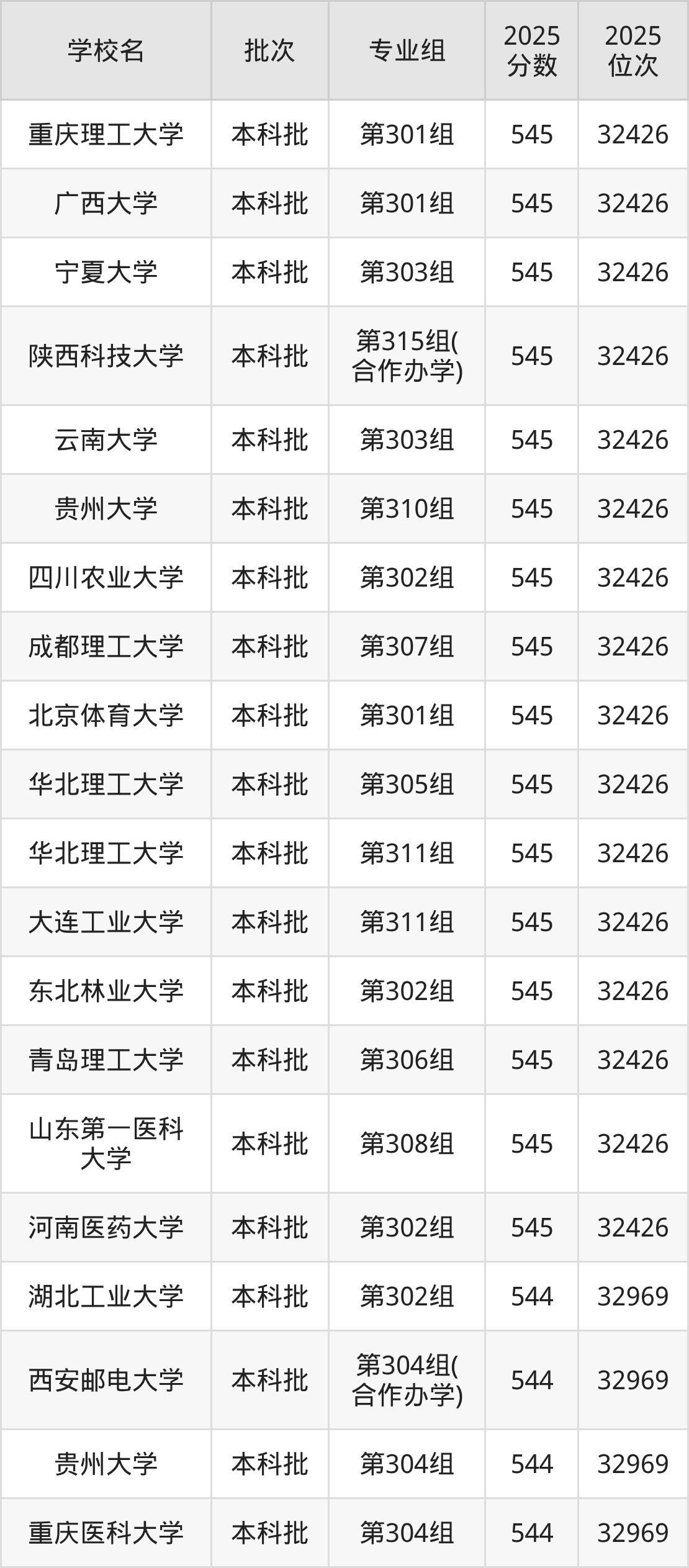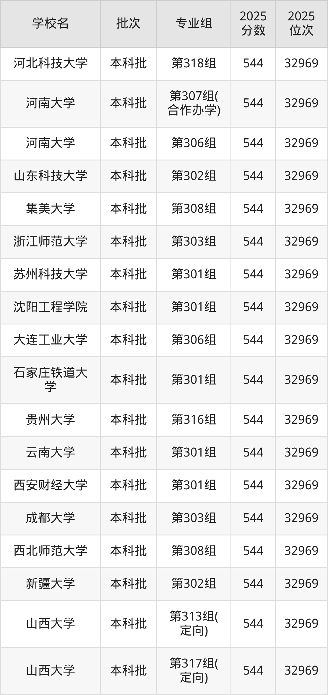 2025年山西高考物理类544分(32427名~32969名)能上的大学有河北科技大学第318组、石家庄铁道大学第301组、大连工业大学第306组、沈阳工程学院第301组等。