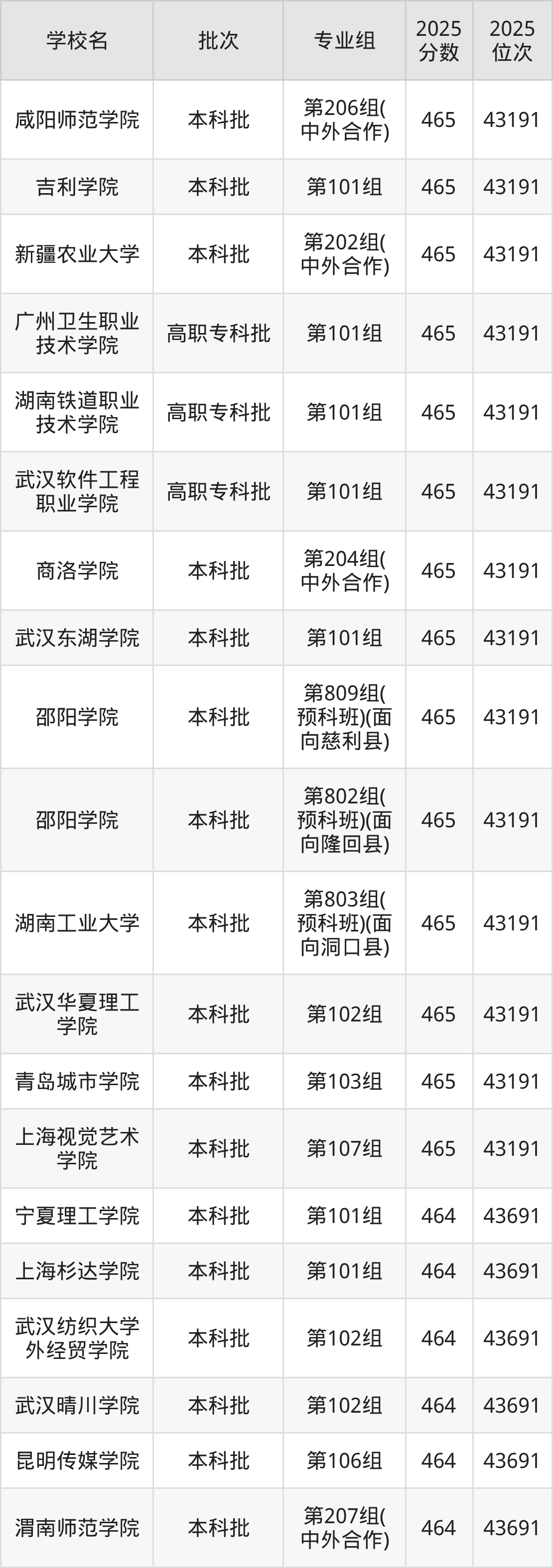 这些都是2026年高考历史类43692名~44193名考生可以报考的大学,更多学校名单如下表所示: