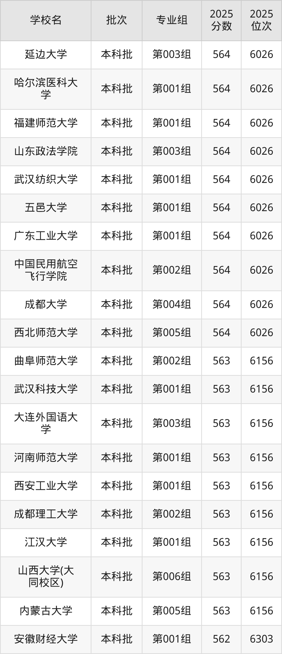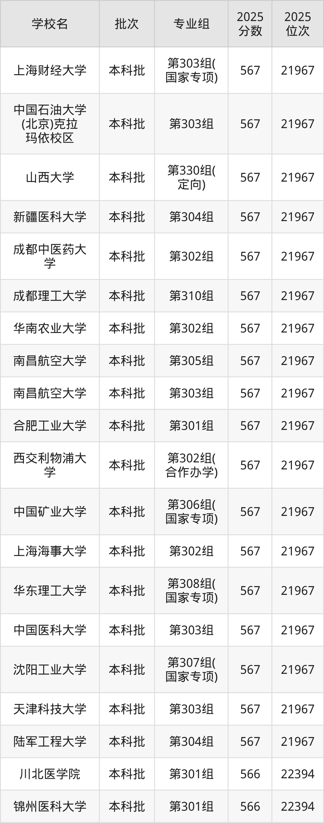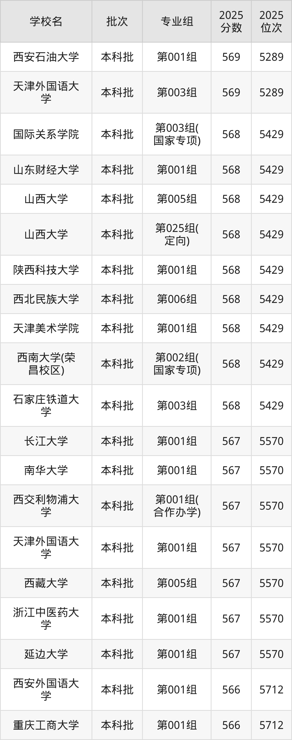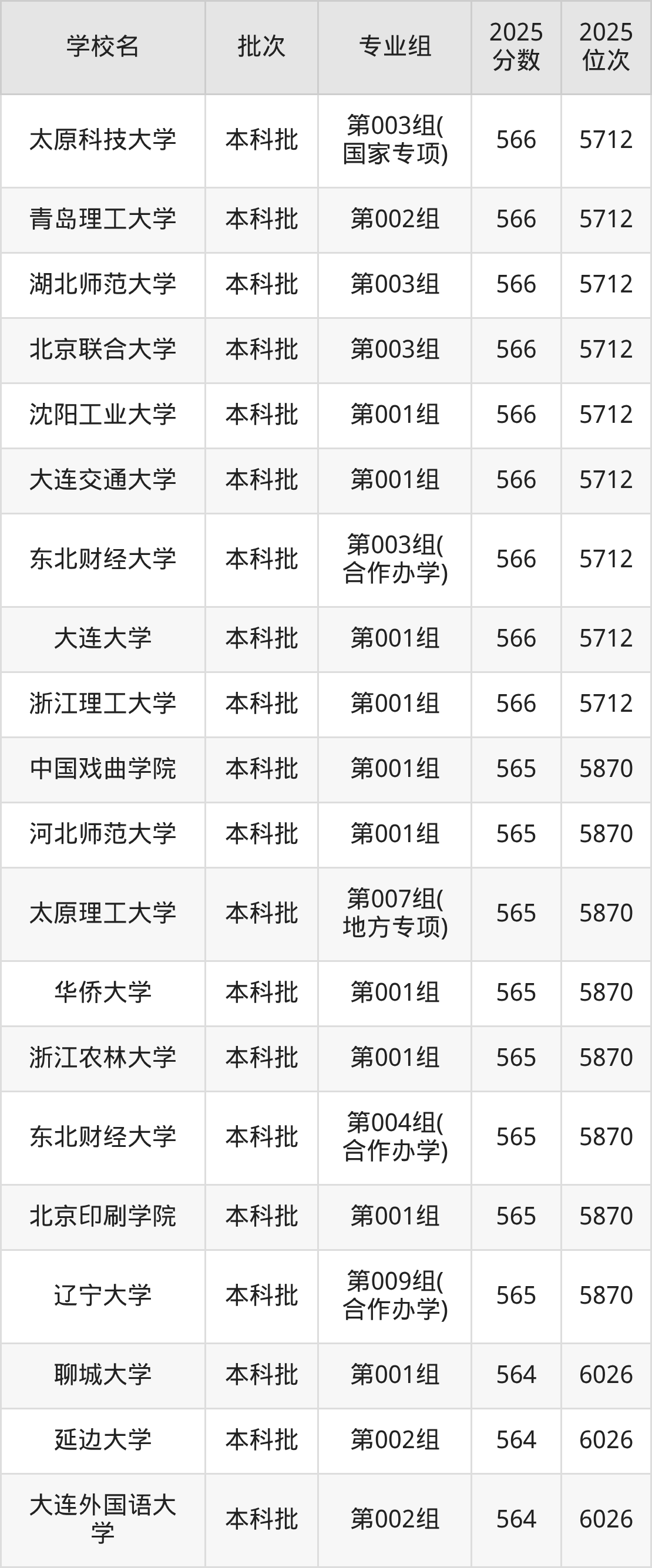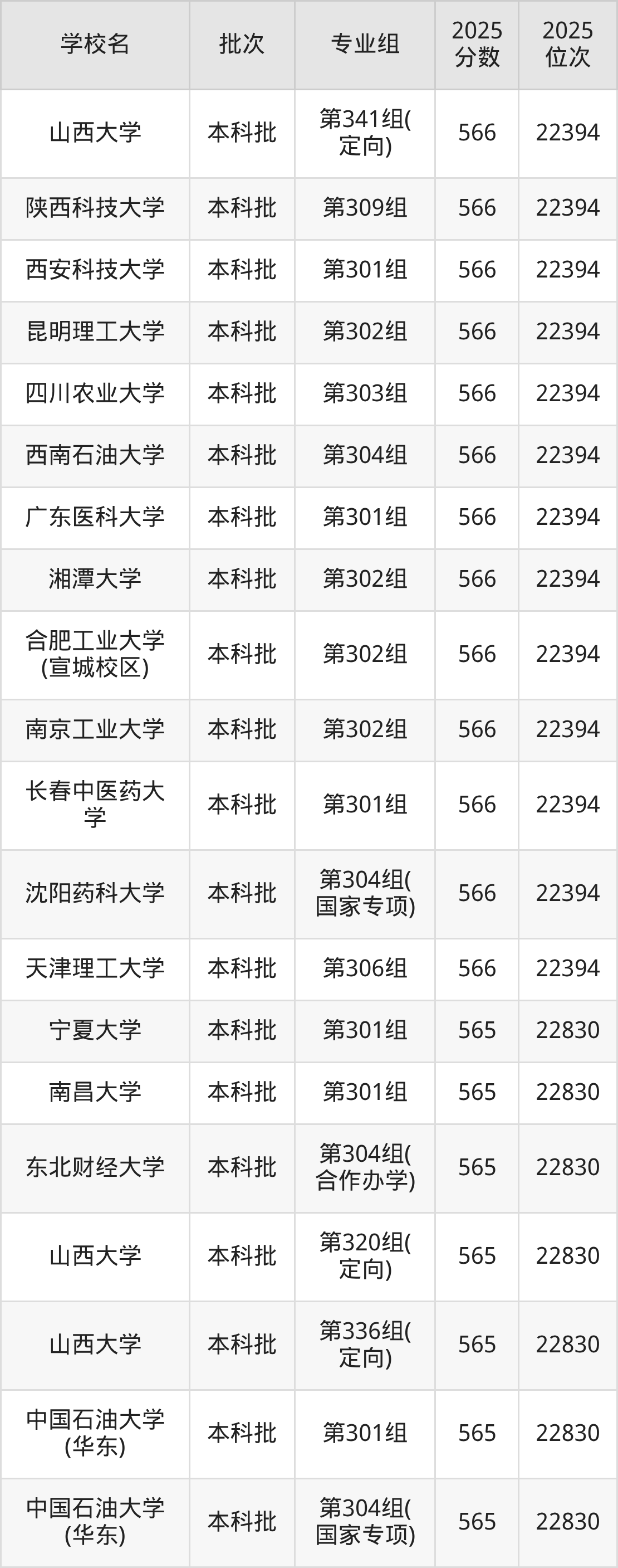 二、山西565分位次排名能上的大学