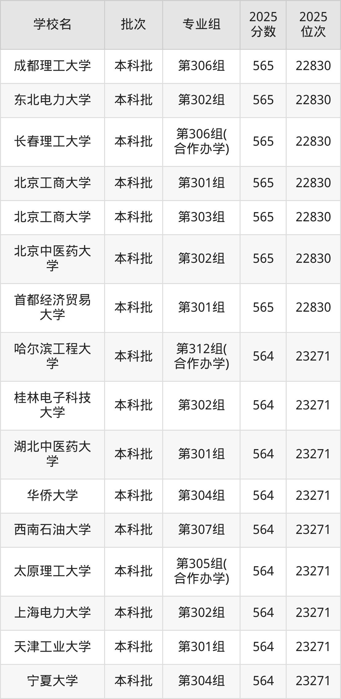 2025年山西高考物理类565分(22395名~22830名)能上的大学有北京工商大学第301组、北京工商大学第303组、北京中医药大学第302组、首都经济贸易大学第301组等。