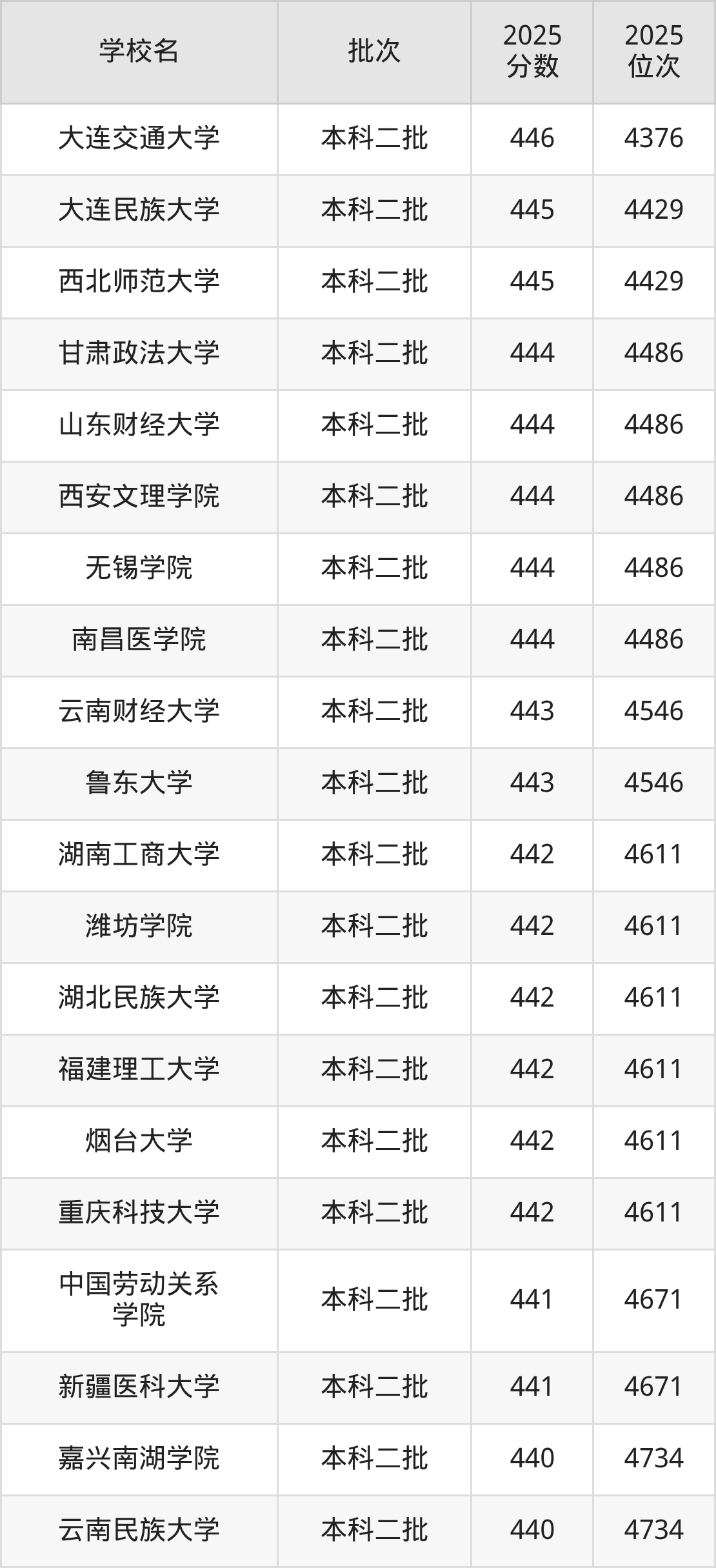2025年新疆高考文科446分(4325名~4376名)能上的大学有大连交通大学。