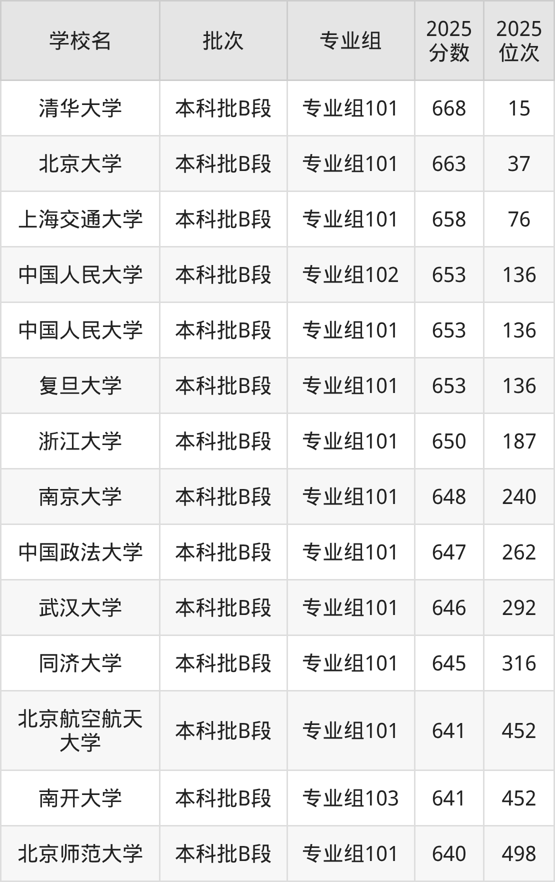 这些都是2026年高考历史类1名~30名考生可以报考的大学,更多学校名单如下表所示: