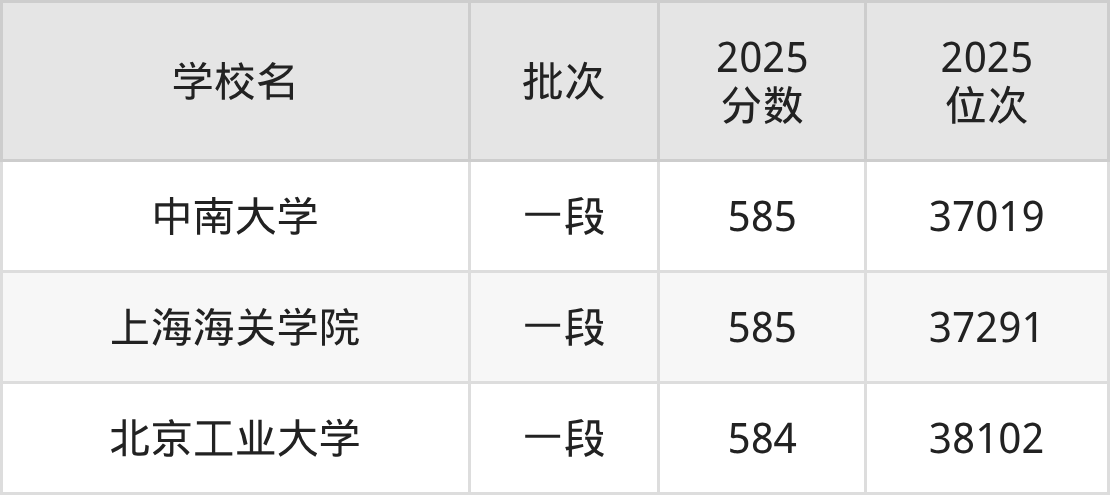 这些都是2026年高考37500名~38477名考生可以报考的大学,更多学校名单如下表所示: