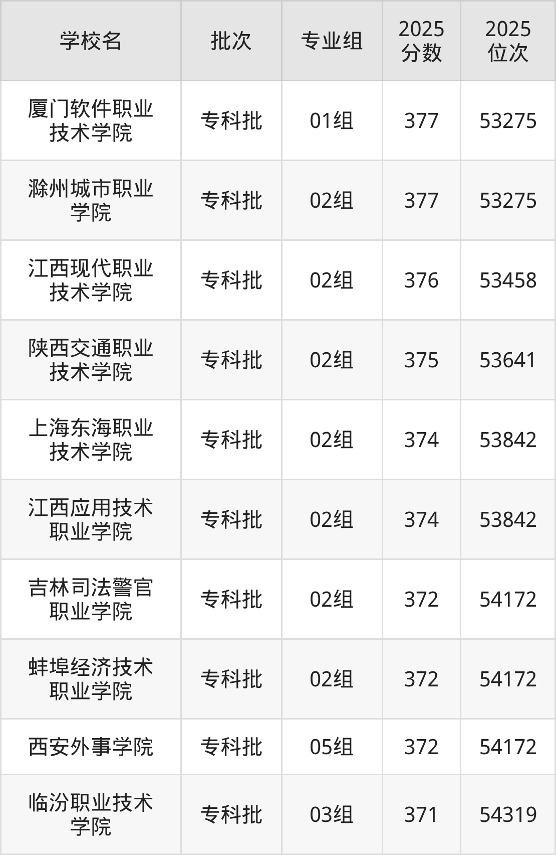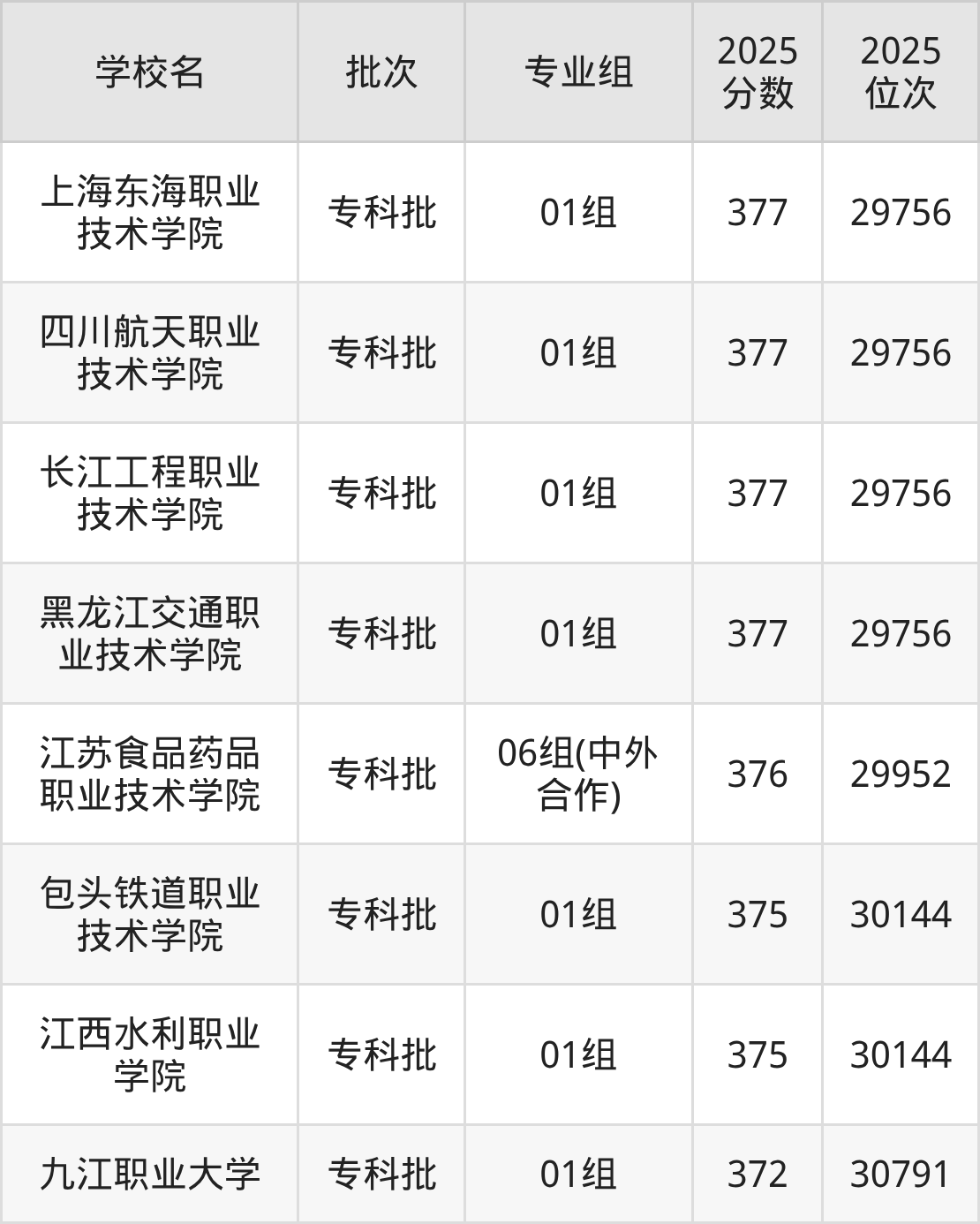 2025年江苏高考物理类374分(53642名~53842名)能上的大学有江西应用技术职业学院02组、上海东海职业技术学院02组。