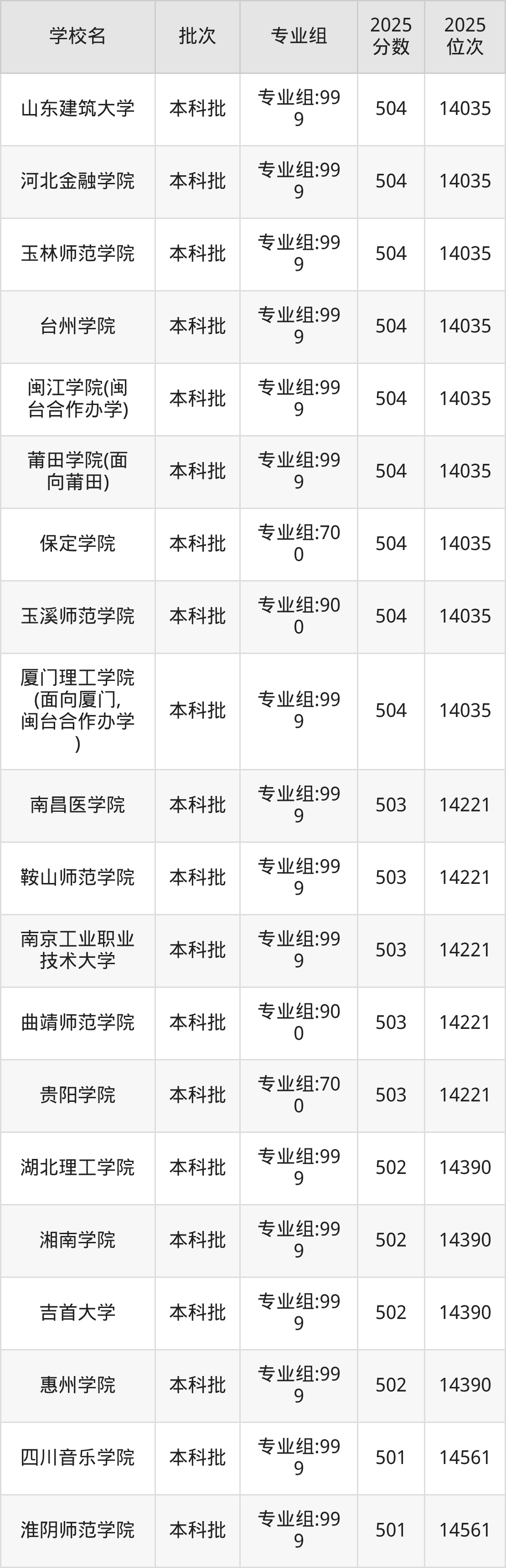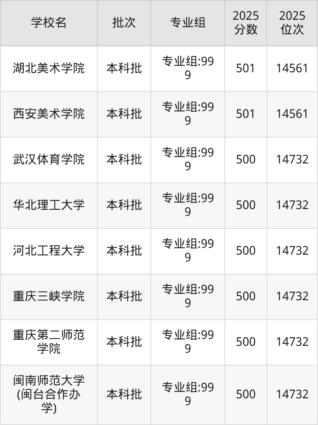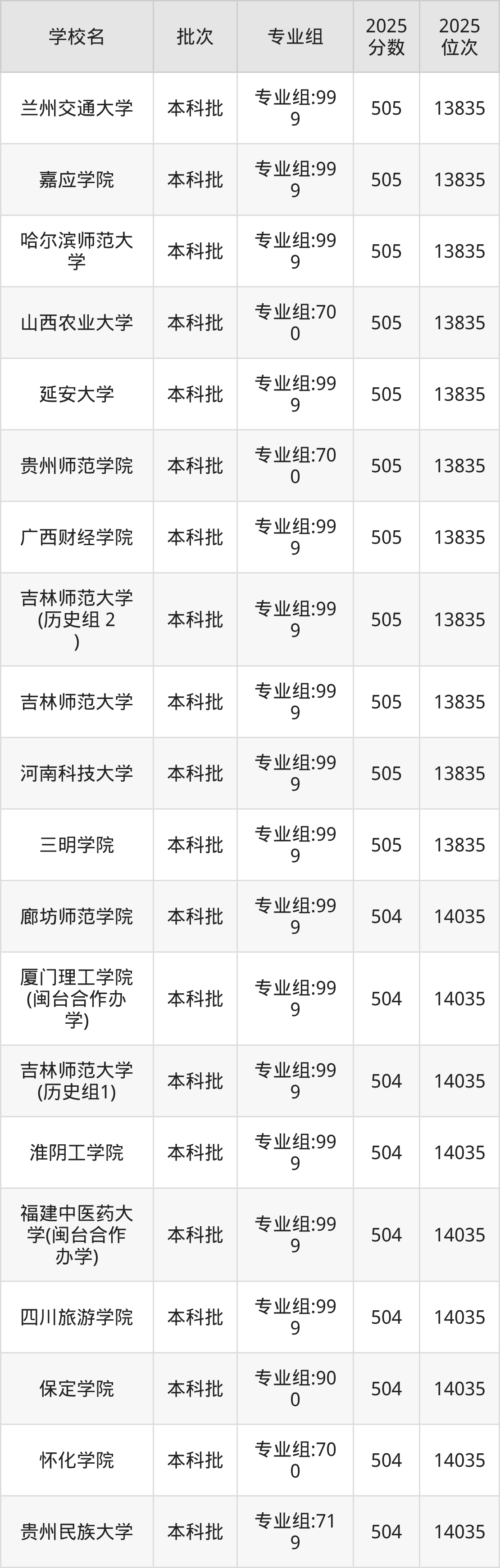 这些都是2026年高考历史类14222名~14390名考生可以报考的大学,更多学校名单如下表所示: