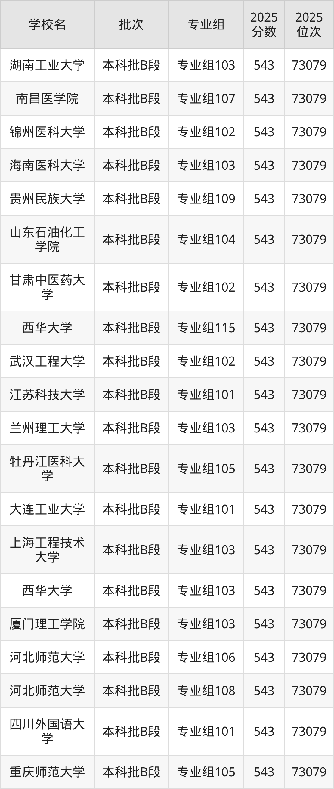 2025年四川高考物理类542分(73080名~74215名)能上的大学有四川师范大学专业组110、上海第二工业大学专业组102、贵州警察学院专业组101、黑龙江大学专业组104等。