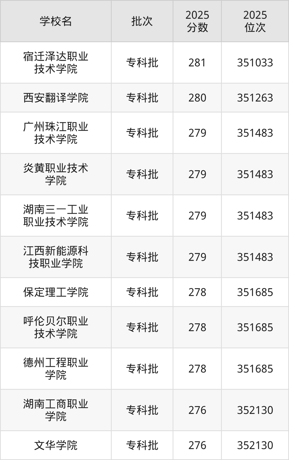 2025年河北高考物理类278分(351484名~351685名)能上的大学有德州工程职业学院、呼伦贝尔职业技术学院、保定理工学院。