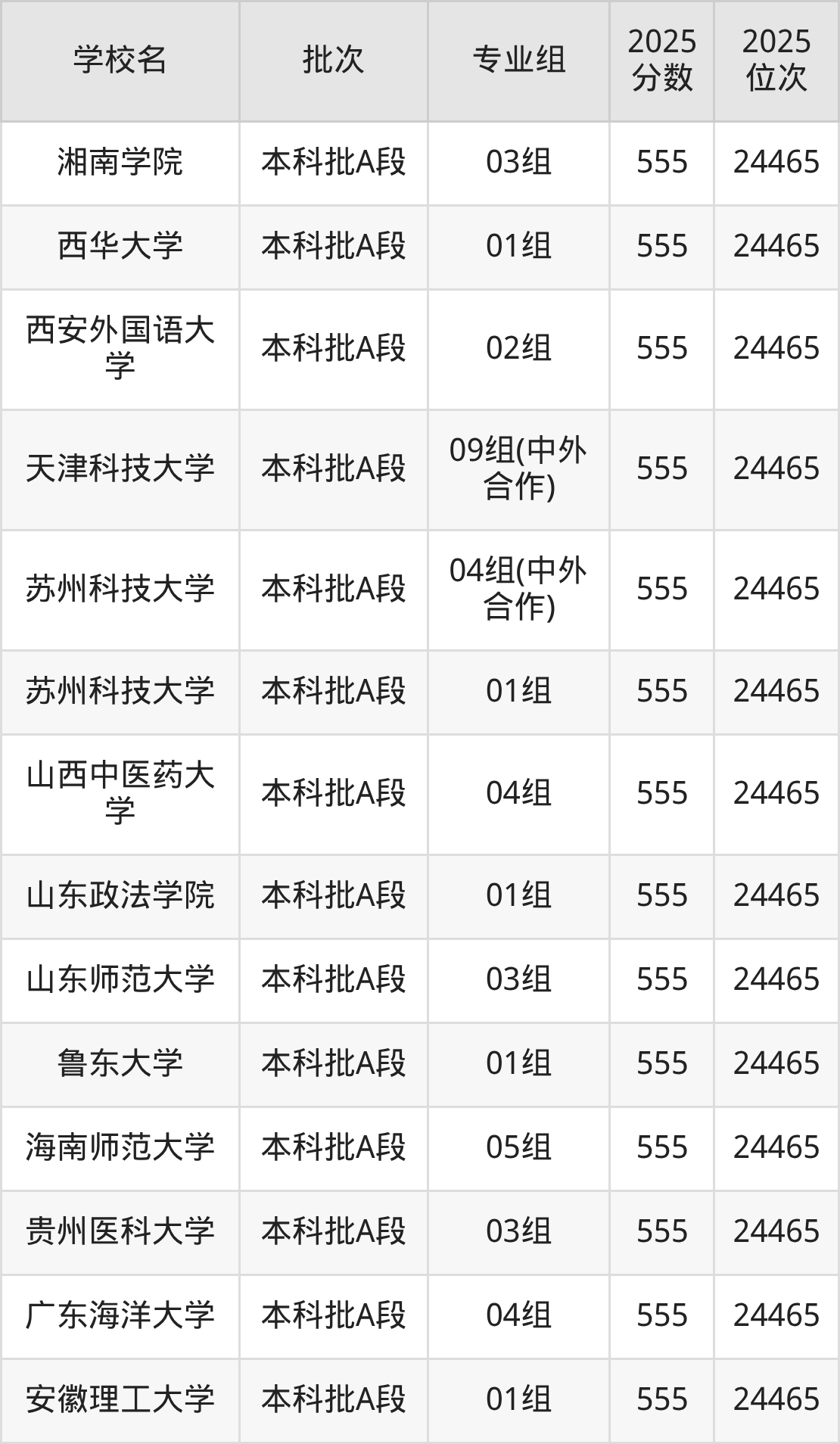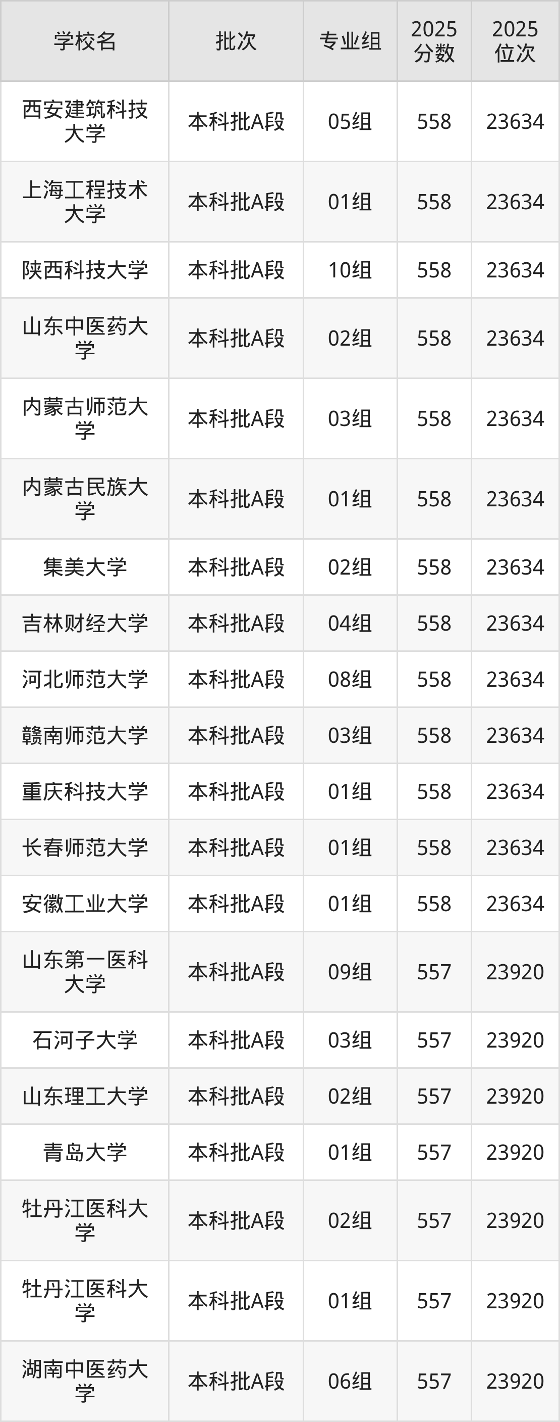 这些都是2026年高考23921名~24209名考生可以报考的大学,更多学校名单如下表所示:
