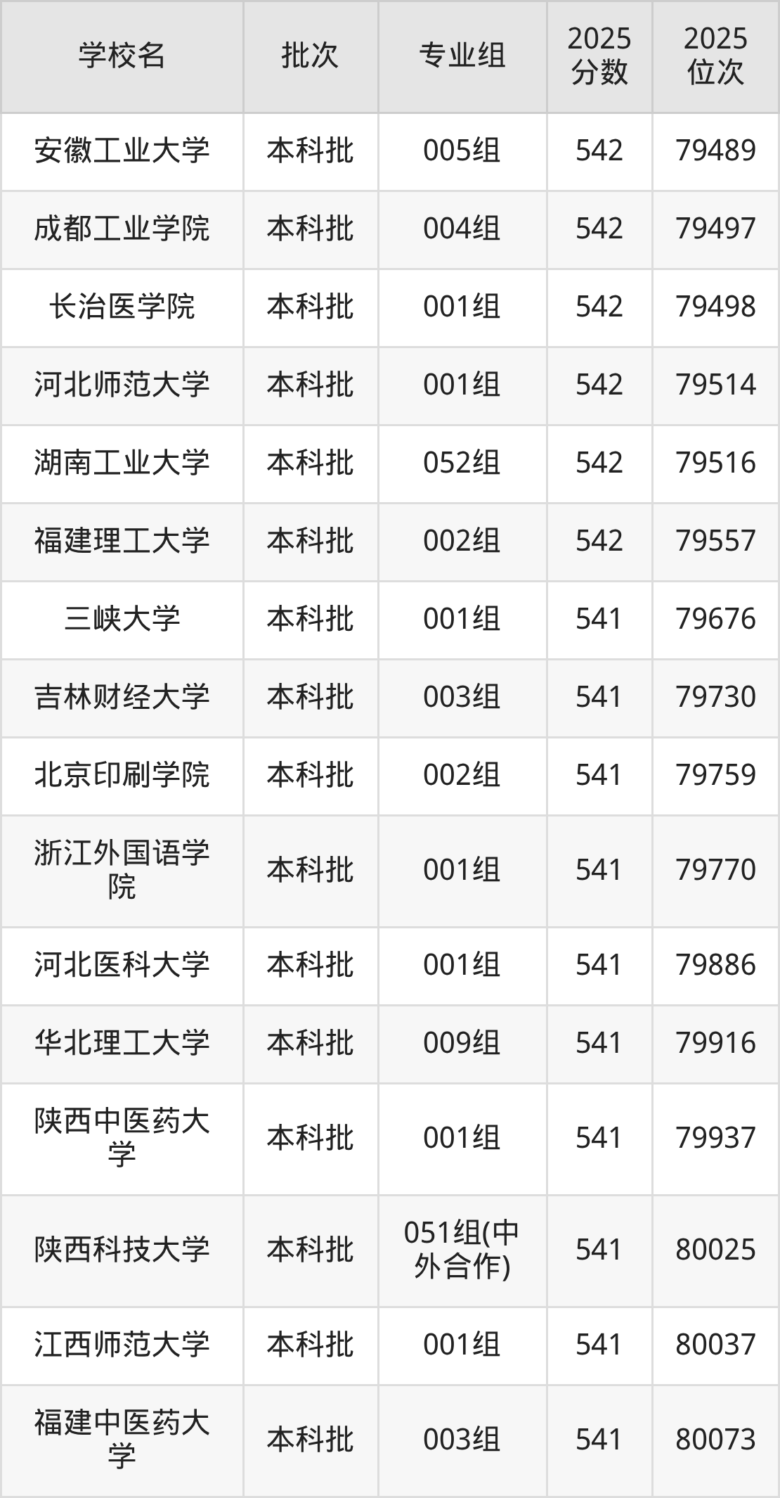 2025年安徽高考物理类542分(78452名~79575名)能上的大学有长春大学003组、长治医学院001组、长治医学院003组、成都工业学院004组等。