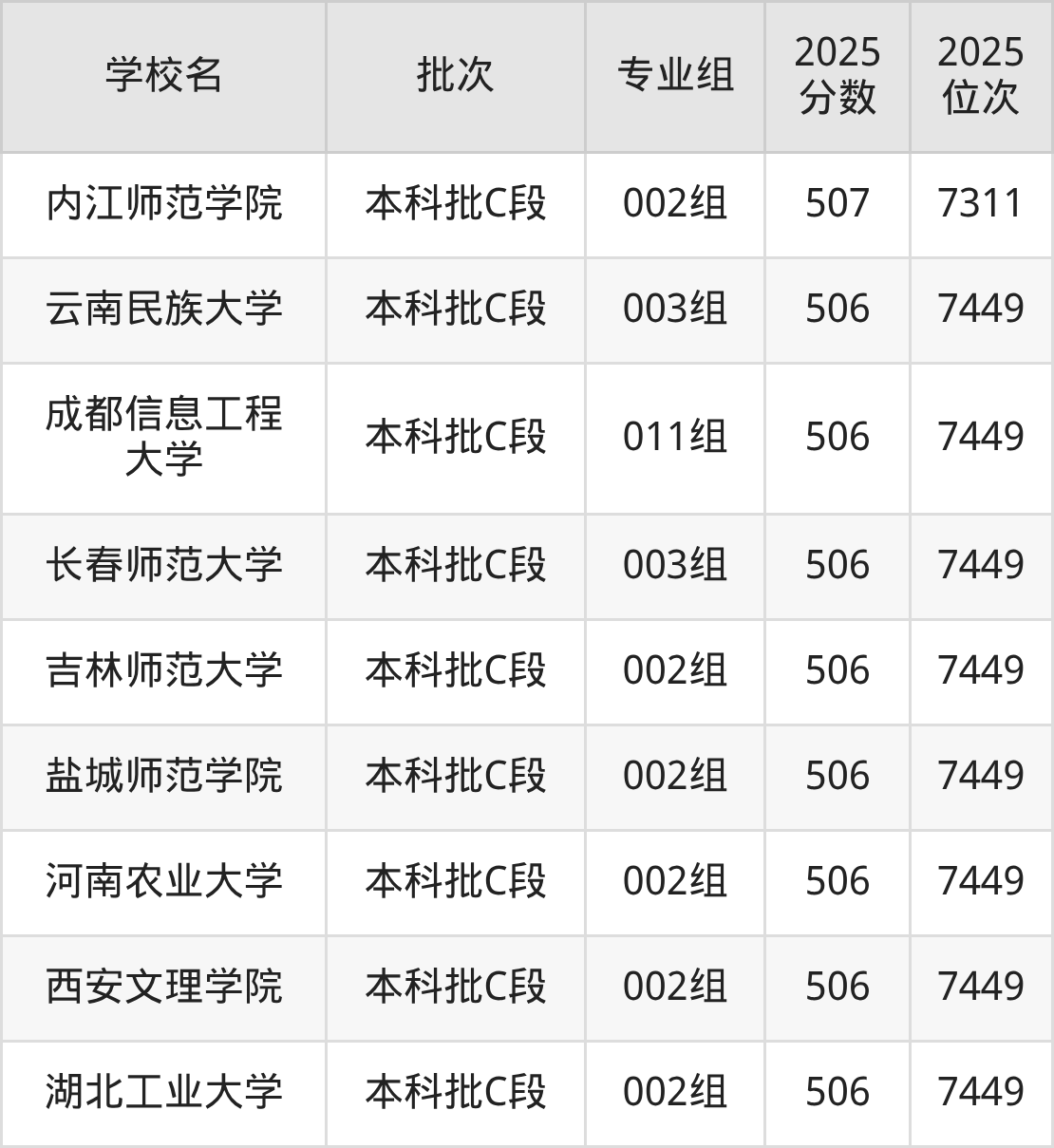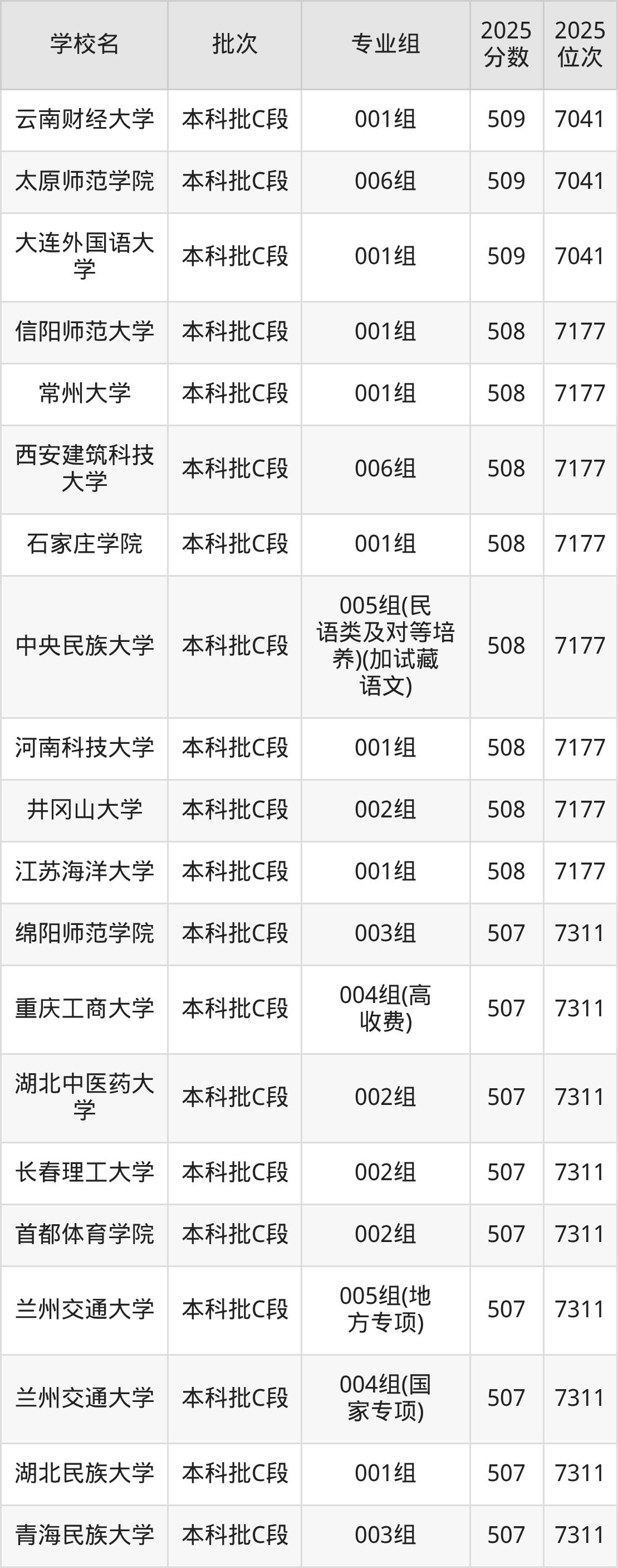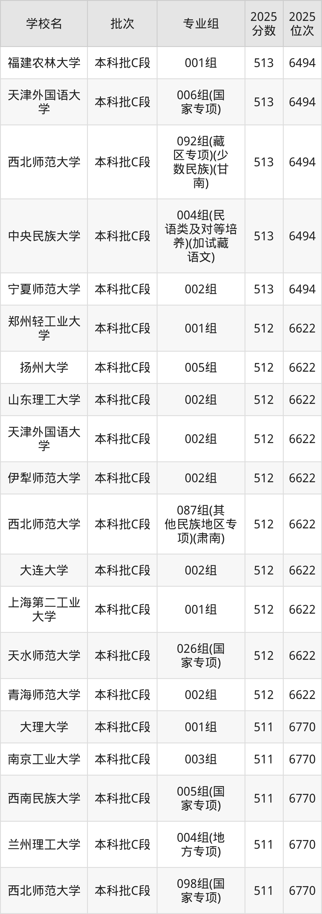 这些都是2026年高考历史类6914名~7041名考生可以报考的大学,更多学校名单如下表所示: