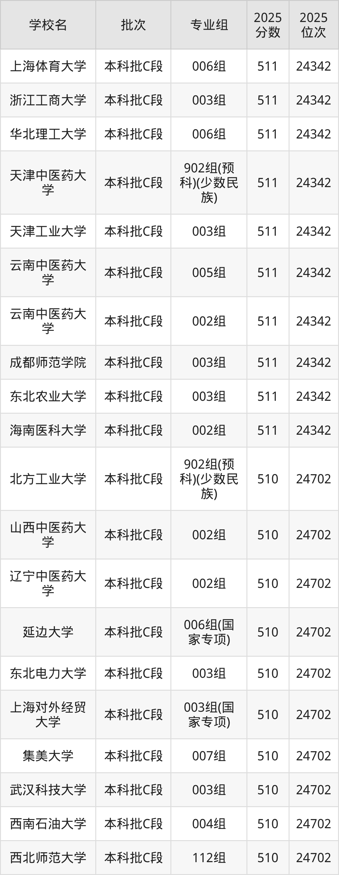 这些都是2026年高考物理类24703名~25071名考生可以报考的大学,更多学校名单如下表所示: