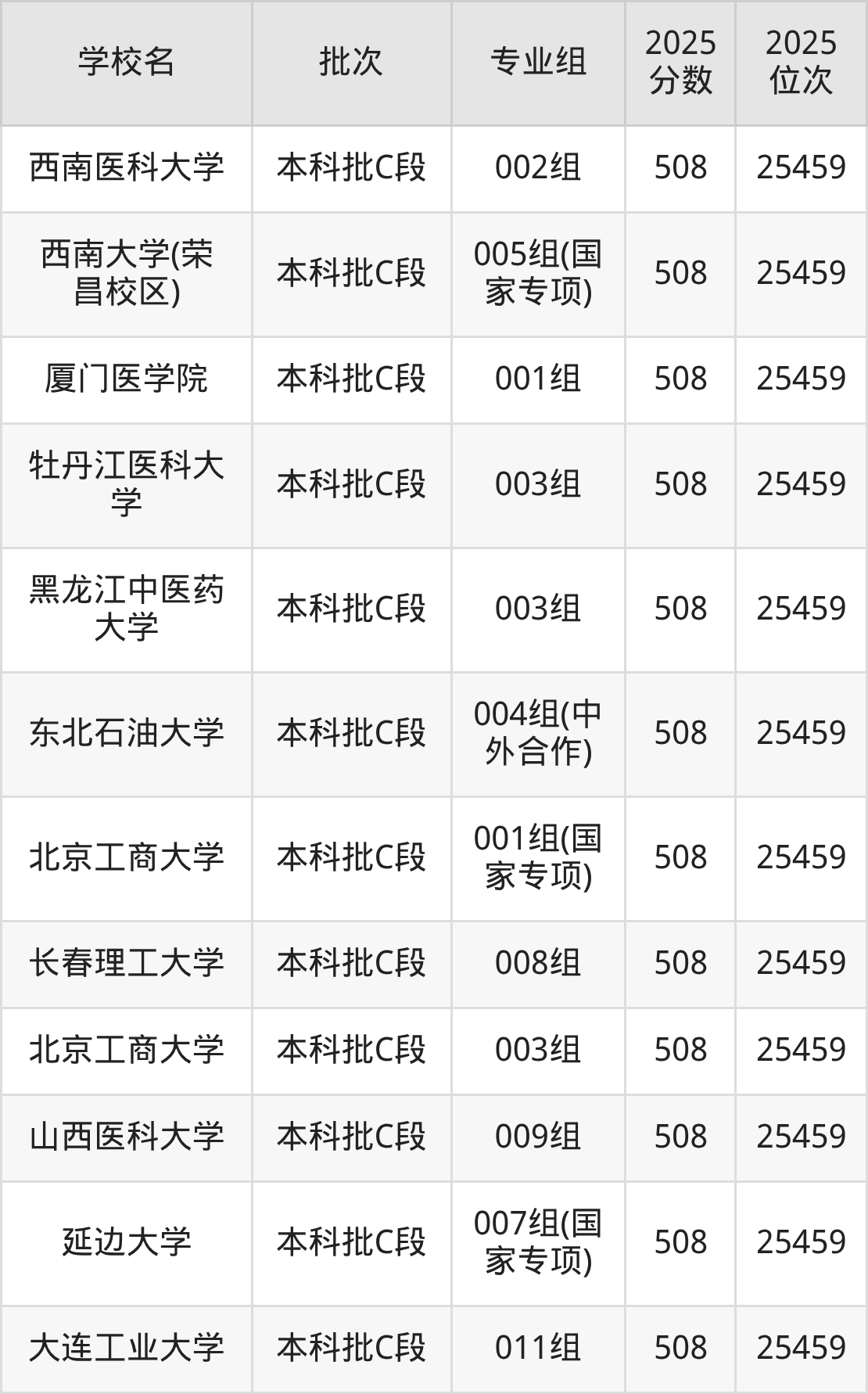 另外录取位次低于该区间(较稳妥)的有长春理工大学008组(25459名)、山西财经大学007组(25459名)等;录取位次高于该区间(可冲)的有北方工业大学902组(预科)(少数民族)(24702名)、山西中医药大学002组(24702名)等。