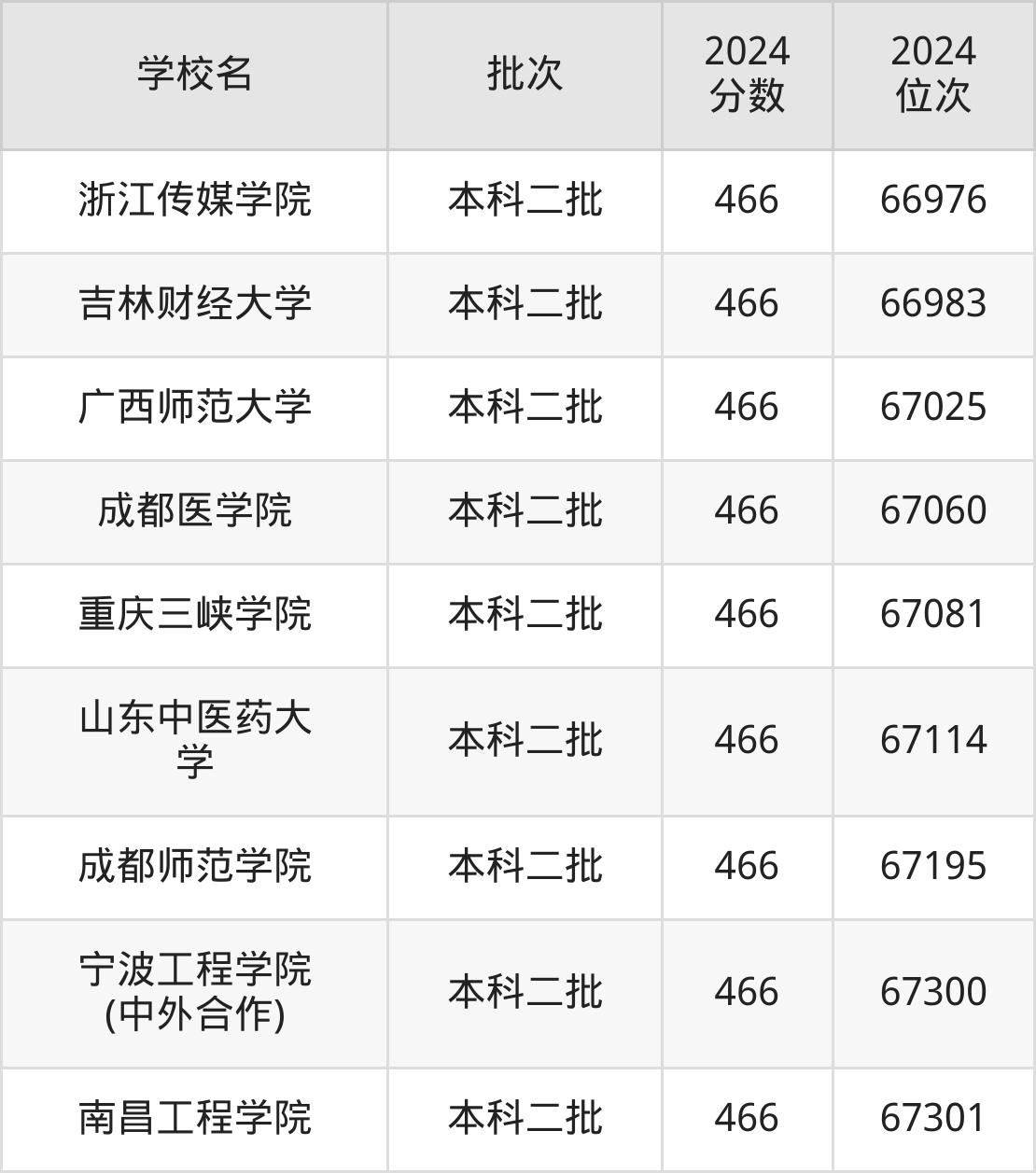 这些都是2025年高考文科20505名~20835名考生可以报考的大学,更多学校名单如下表所示: