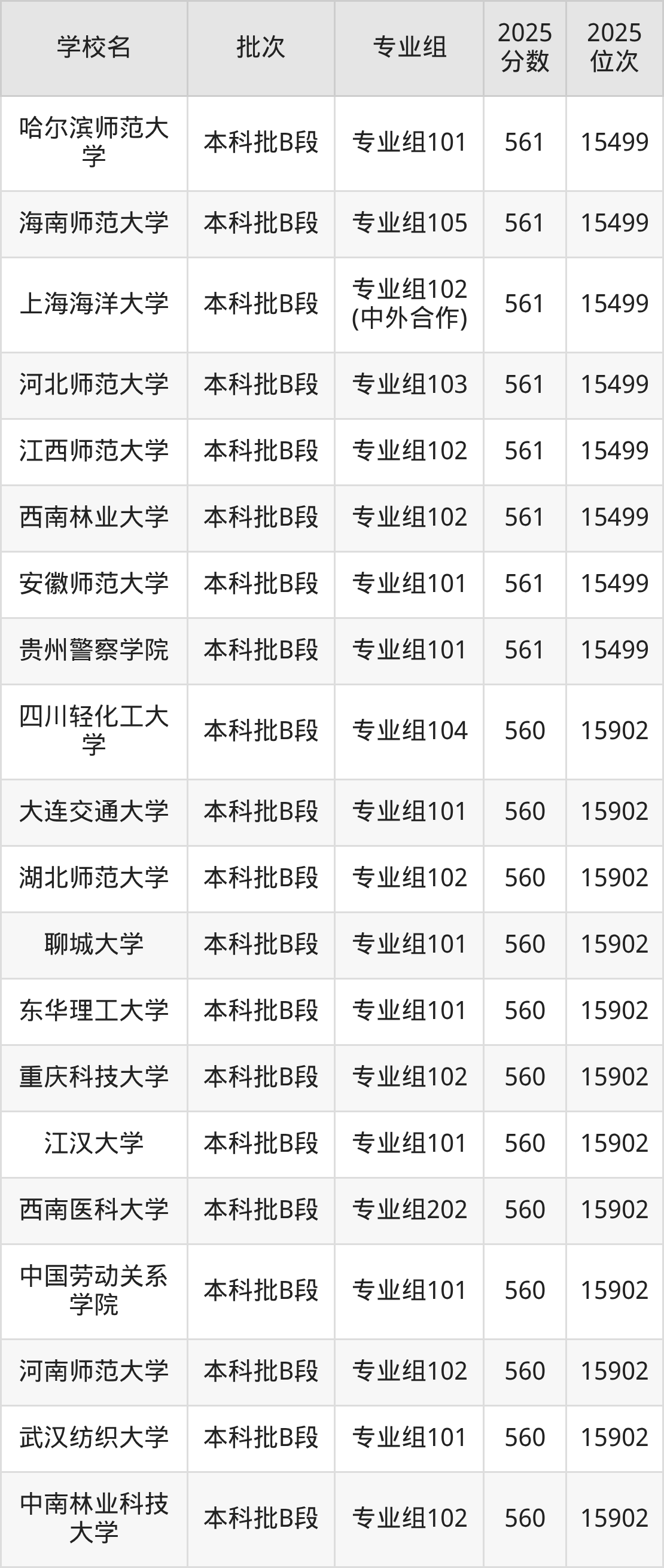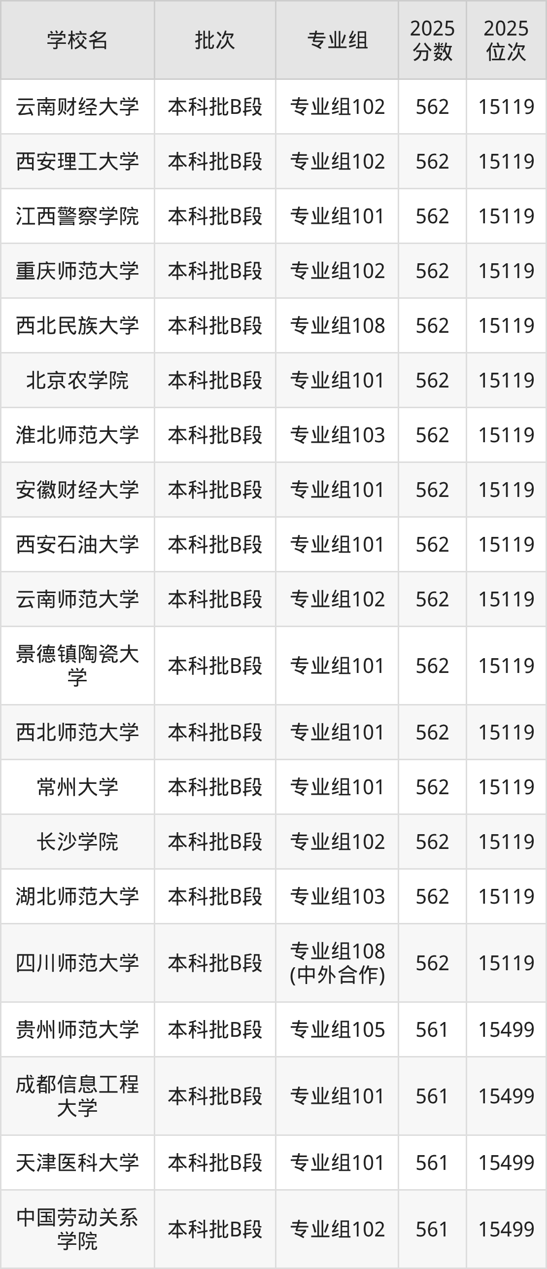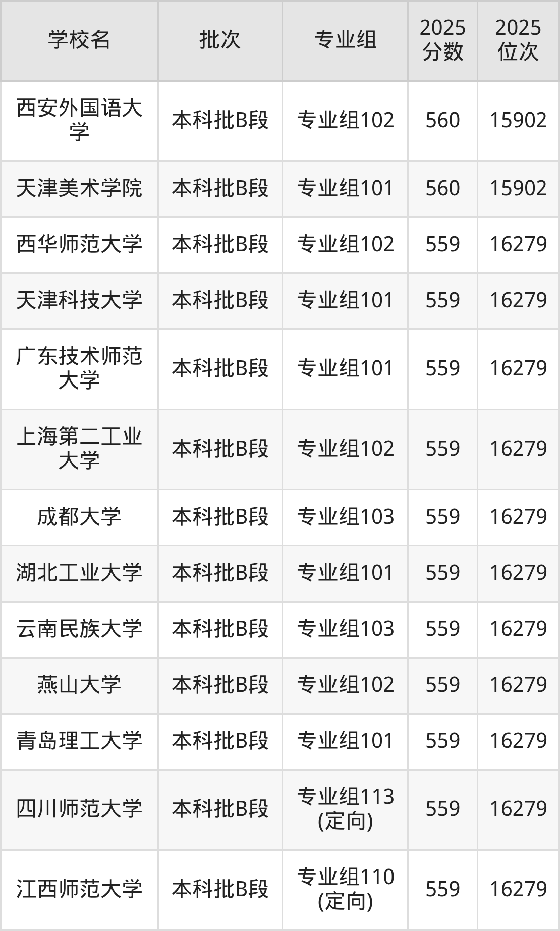 这些都是2026年高考历史类15500名~15902名考生可以报考的大学,更多学校名单如下表所示: