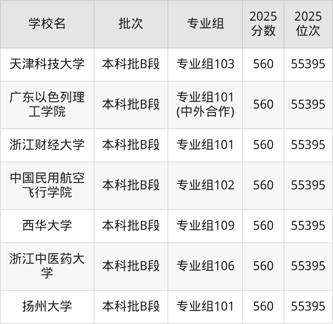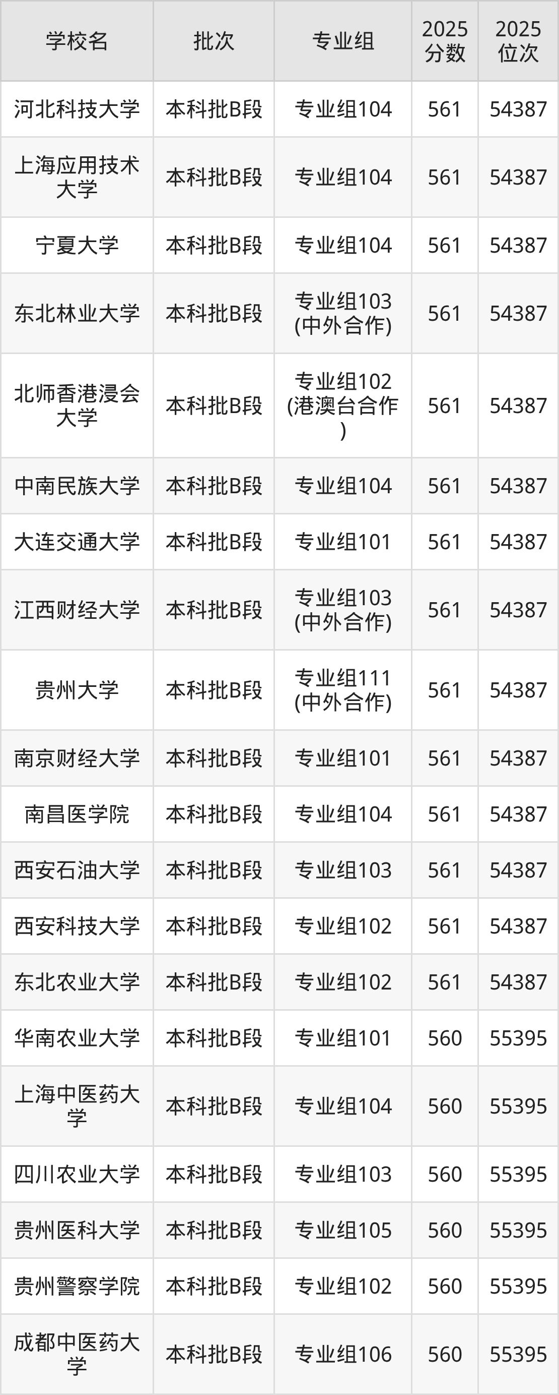 2025年四川高考物理类560分(54388名~55395名)能上的大学有四川农业大学专业组103、贵州医科大学专业组105、贵州警察学院专业组102、成都中医药大学专业组106等。