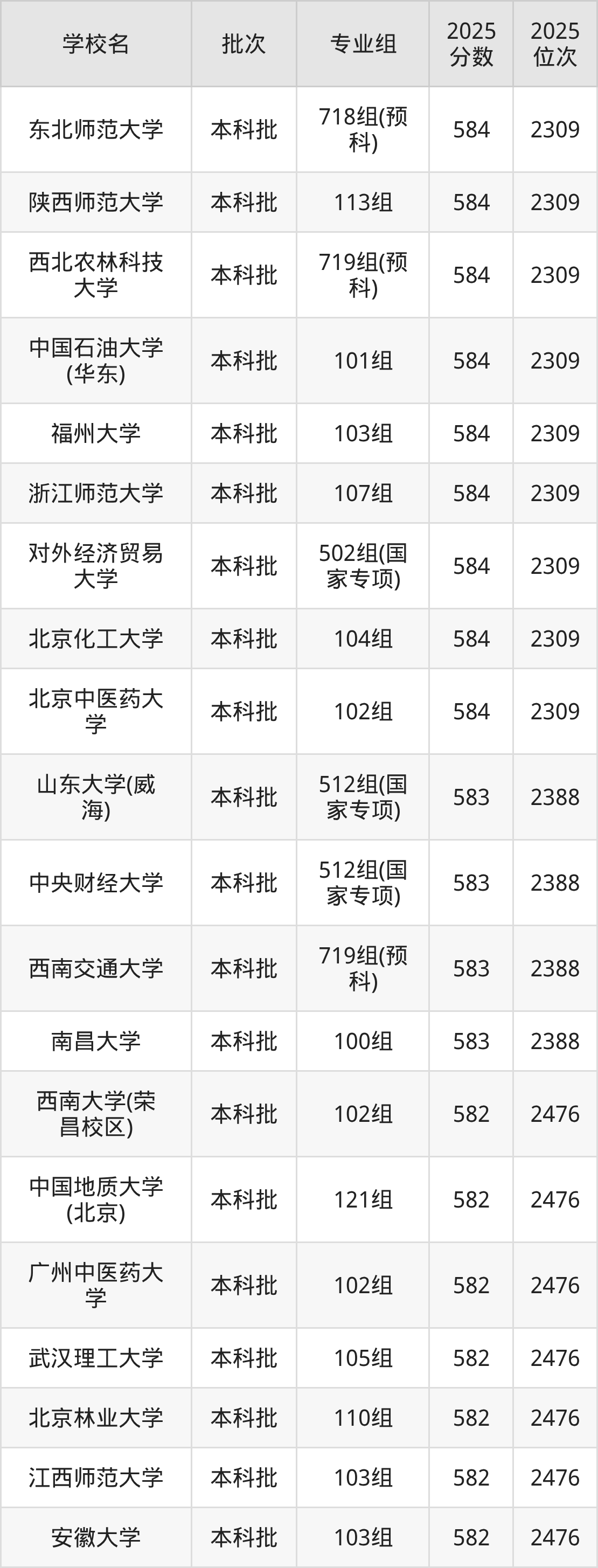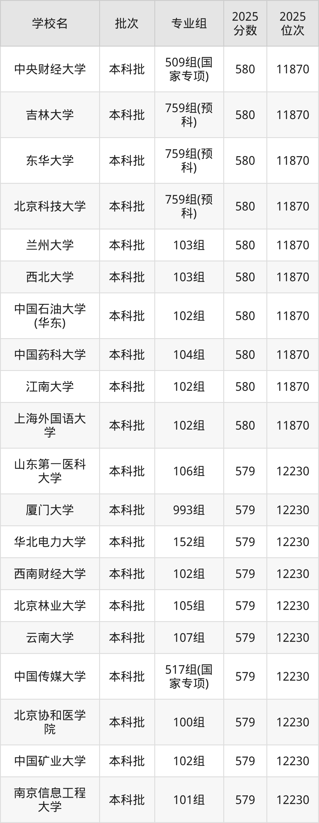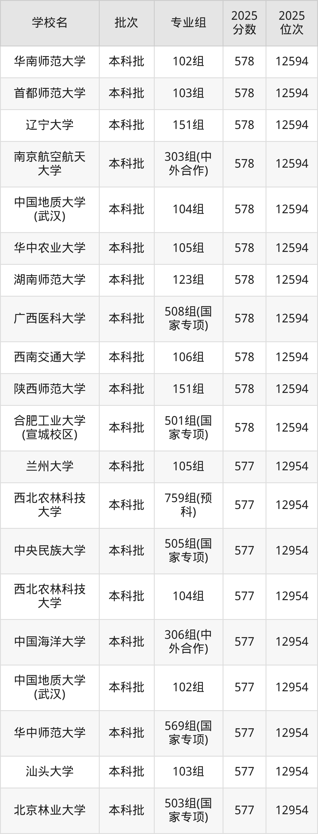 另外录取位次低于该区间(较稳妥)的有汕头大学103组(12954名)、华中师范大学569组(国家专项)(12954名)等;录取位次高于该区间(可冲)的有北京林业大学105组(12230名)、北京协和医学院100组(12230名)等。