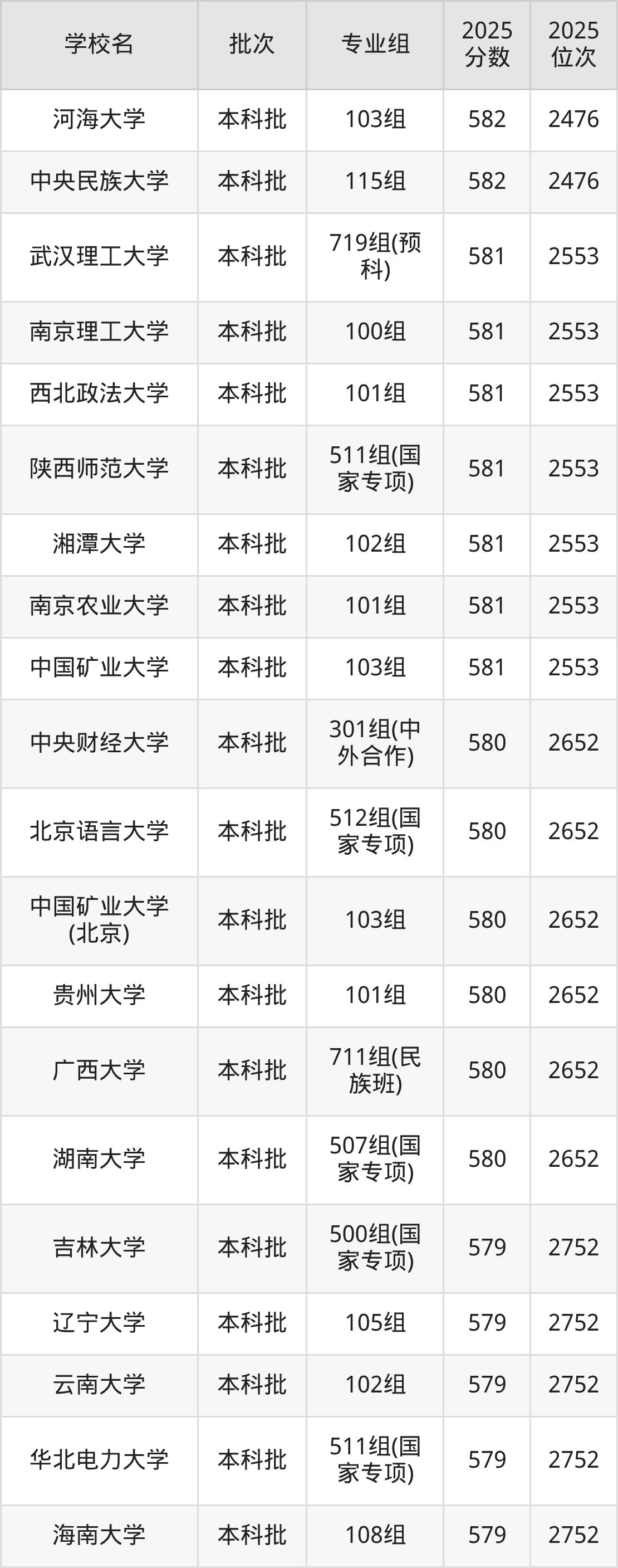 这些都是2026年高考历史类2753名~2831名考生可以报考的大学,更多学校名单如下表所示: