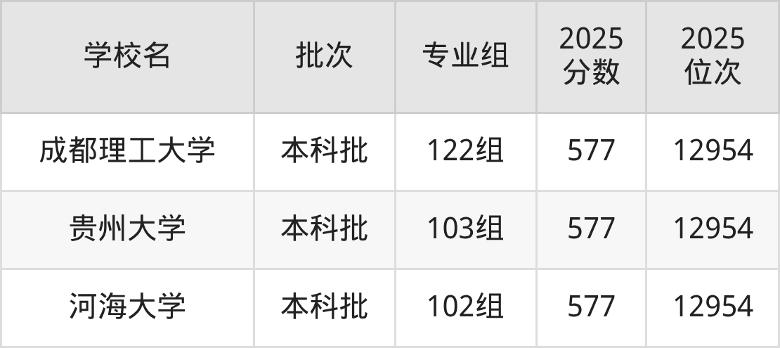 这些都是2026年高考物理类12231名~12594名考生可以报考的大学,更多学校名单如下表所示: