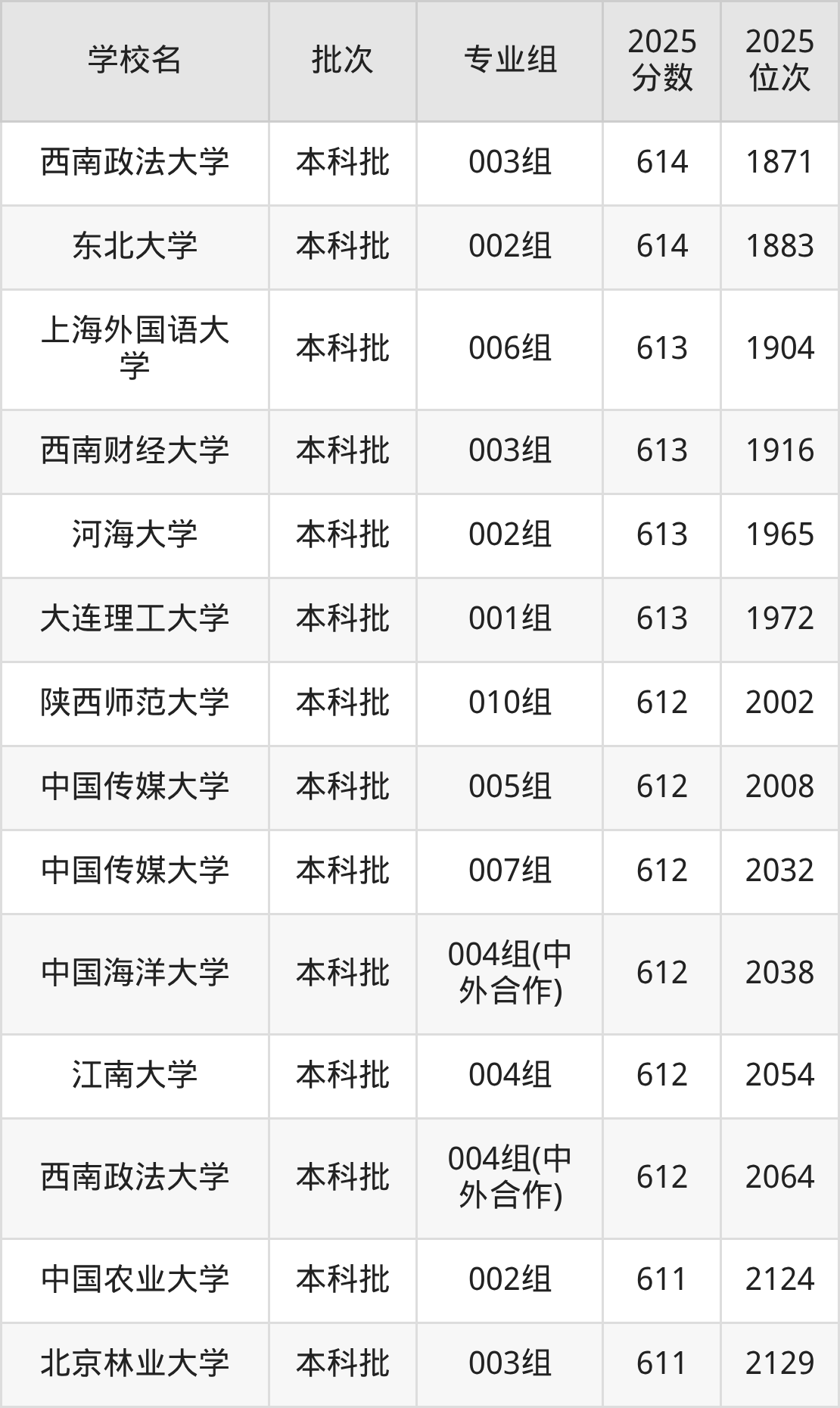 由于高考录取分数线历年波动较大,因此本文以该分数对应的位次排名为大家整理能上的大学名单。