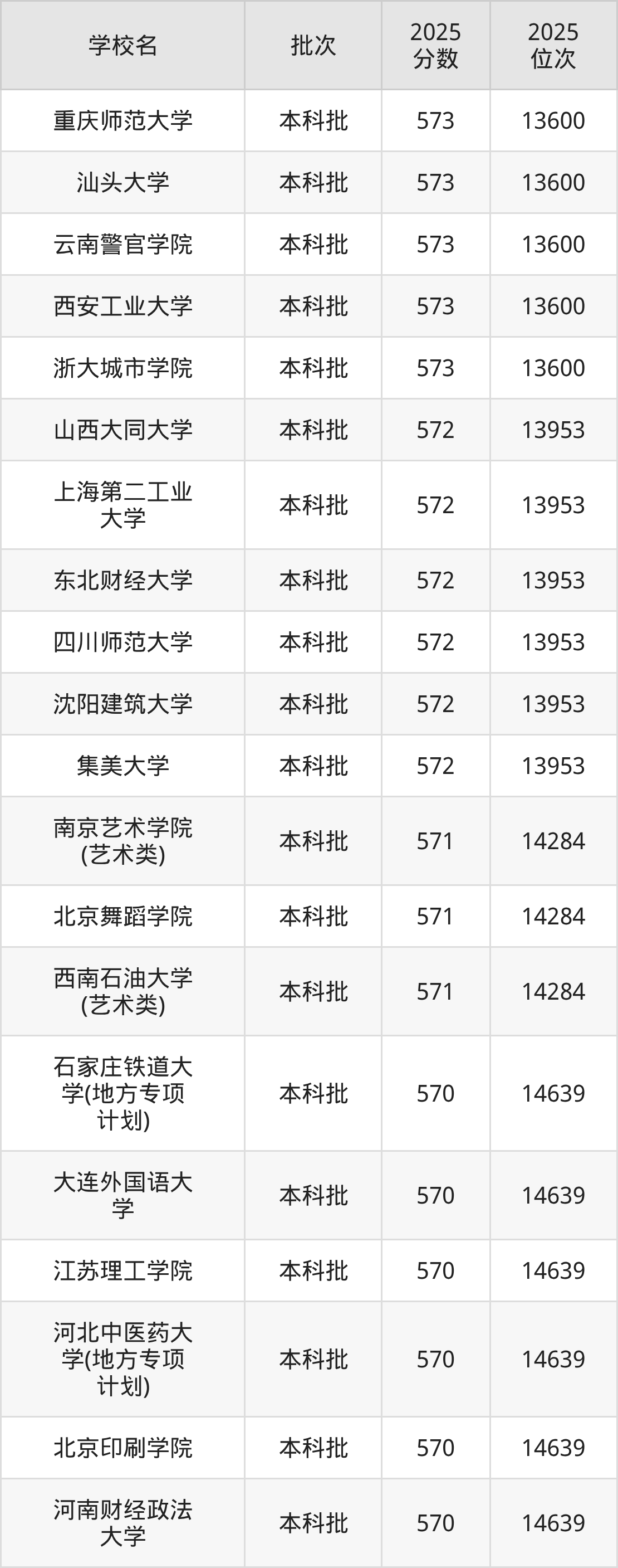 二、河北571分位次排名能上的大学