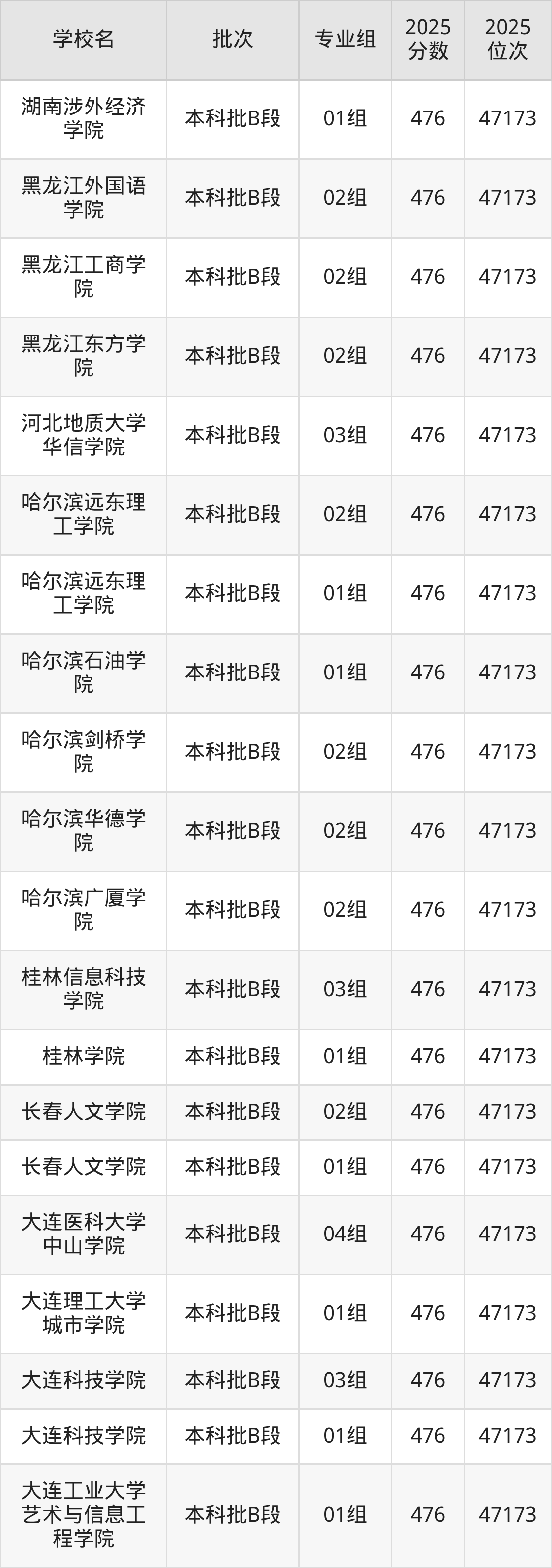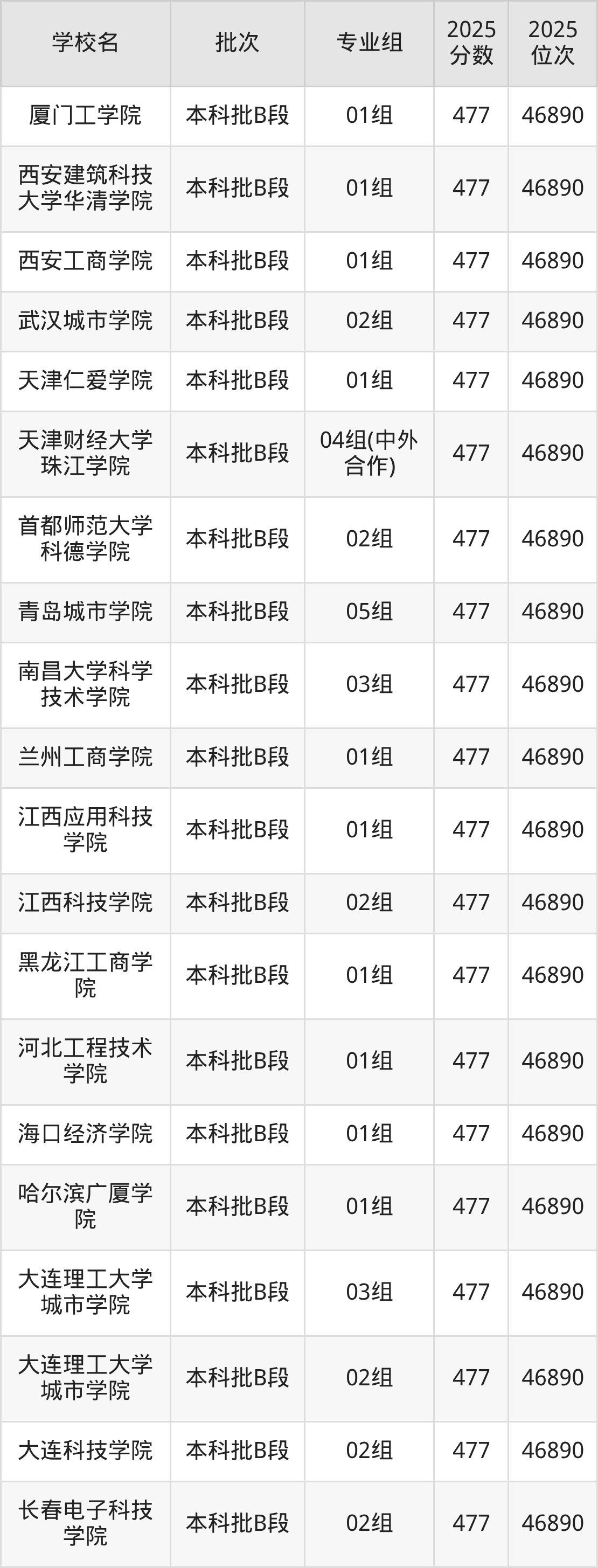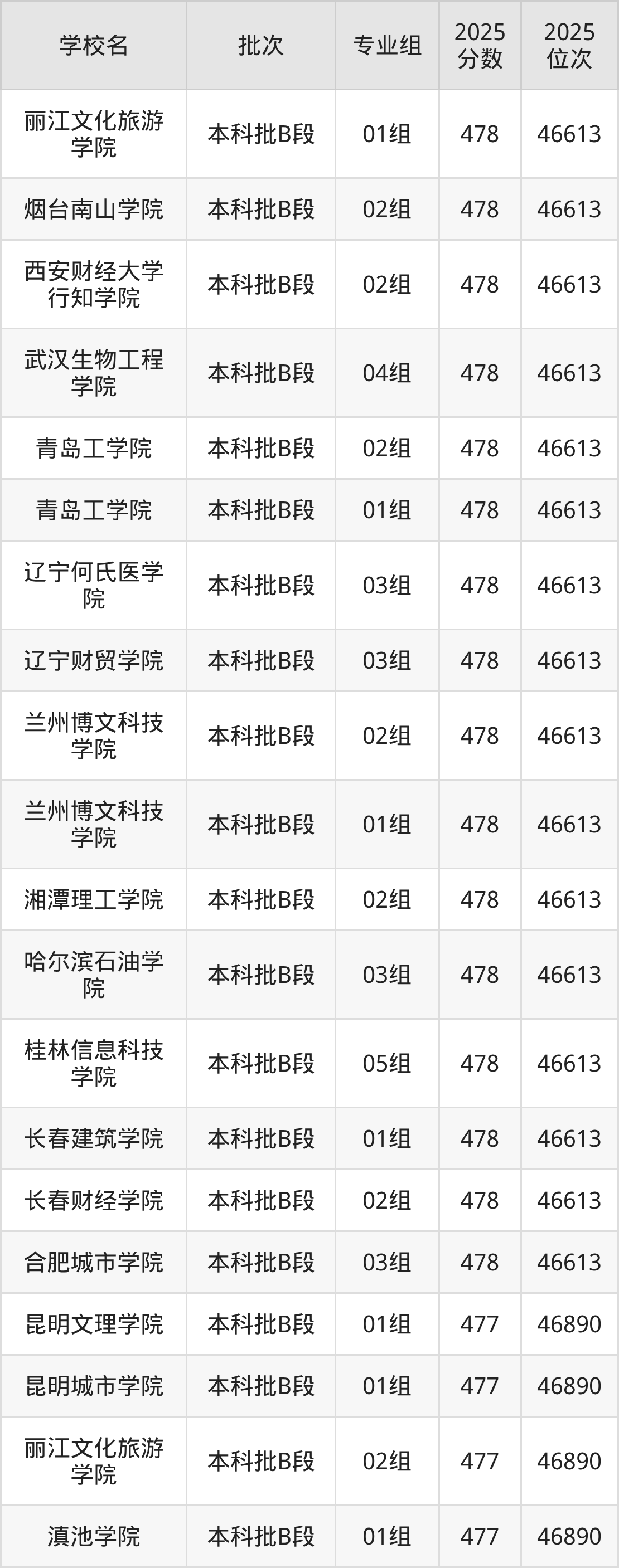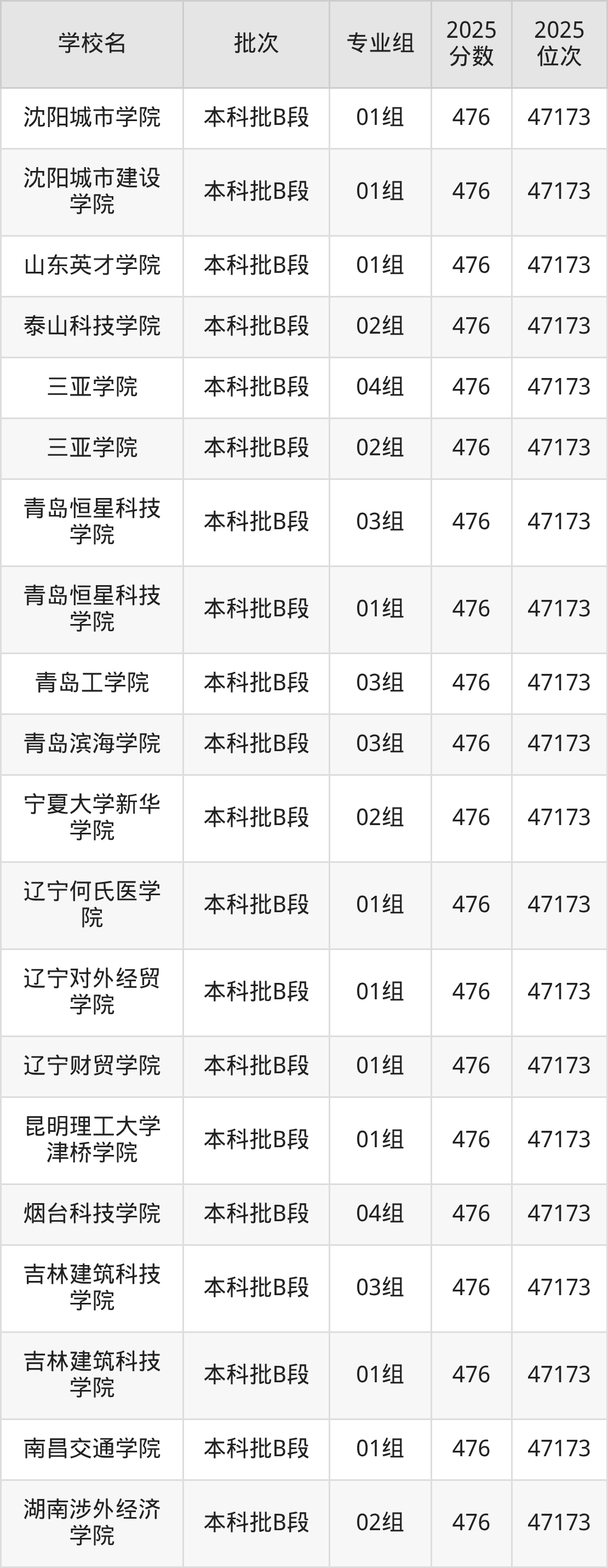 这些都是2026年高考46891名~47173名考生可以报考的大学,更多学校名单如下表所示: