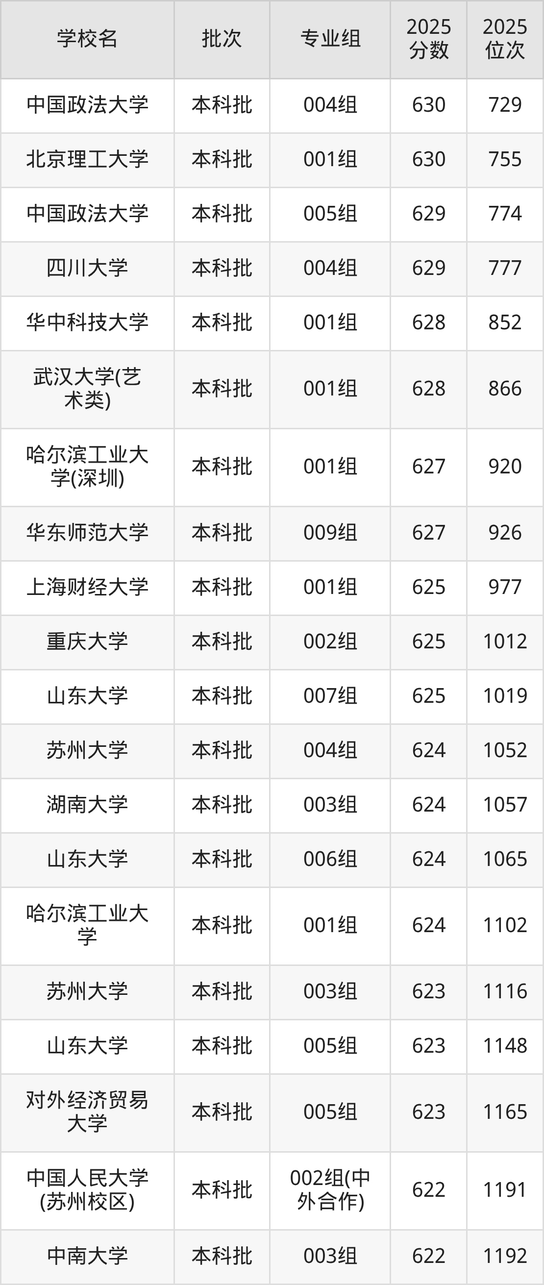 另外录取位次低于该区间(较稳妥)的有中国政法大学004组(729名)、北京理工大学001组(755名)等;录取位次高于该区间(可冲)的有北京师范大学(珠海校区)003组(655名)、厦门大学005组(653名)等。