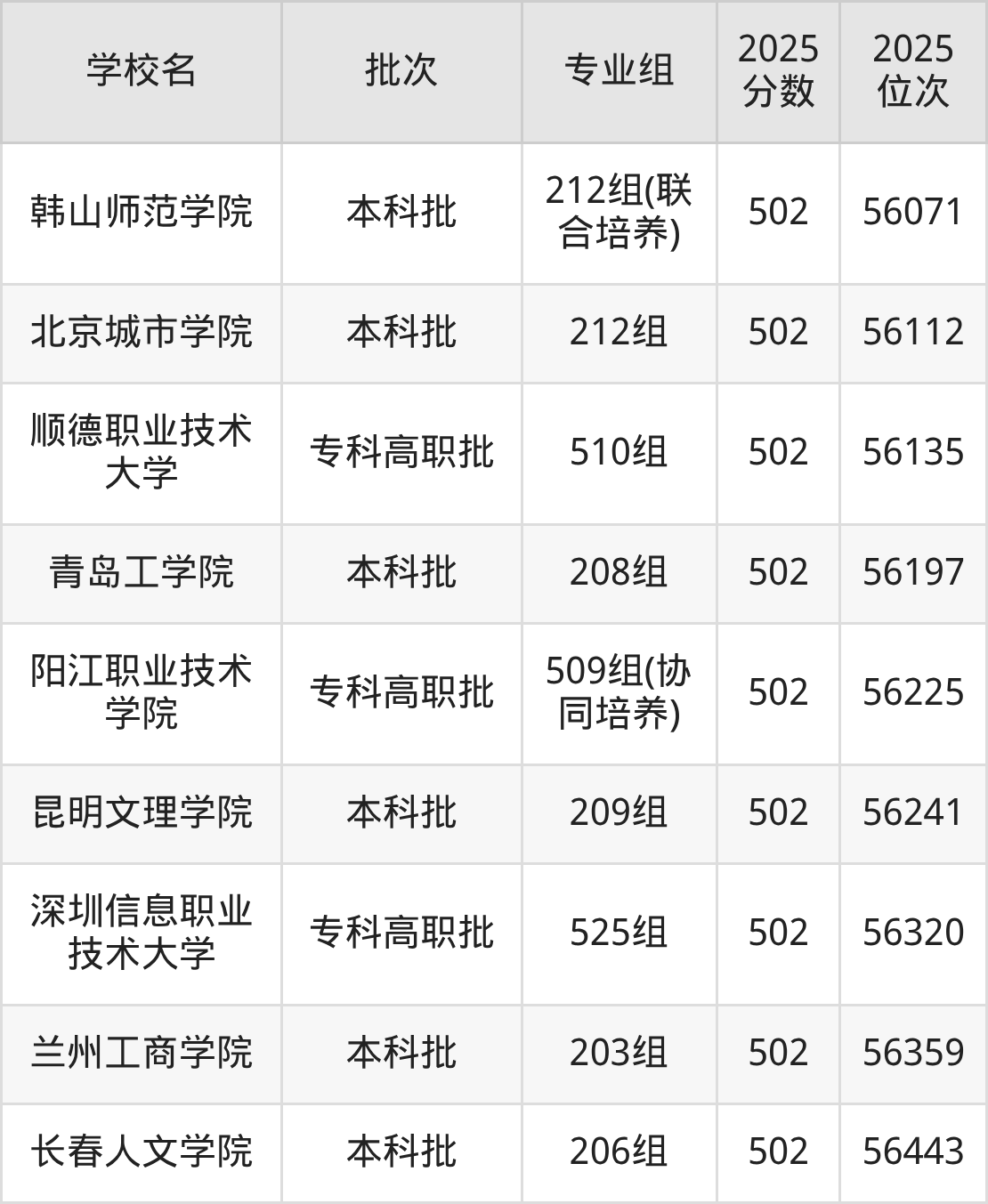 这些都是2026年高考历史类55158名~55963名考生可以报考的大学,更多学校名单如下表所示: