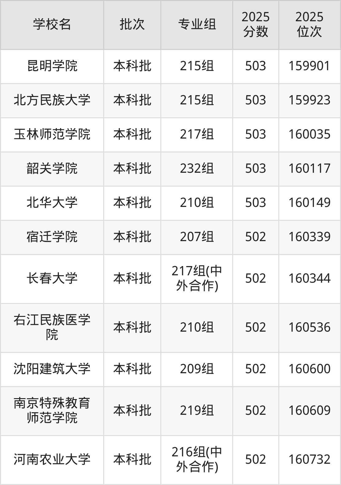 另外录取位次低于该区间(较稳妥)的有宿迁学院207组(160339名)、长春大学217组(中外合作)(160344名)等;录取位次高于该区间(可冲)的有南阳理工学院210组(158379名)、广东石油化工学院203组(158327名)等。