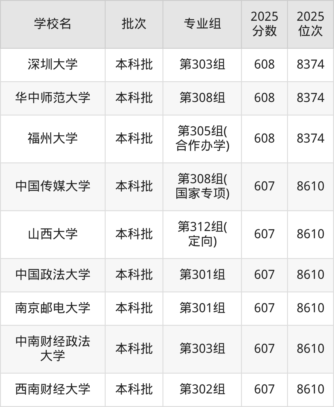 这些都是2026年高考历史类1271名~1321名考生可以报考的大学,更多学校名单如下表所示: