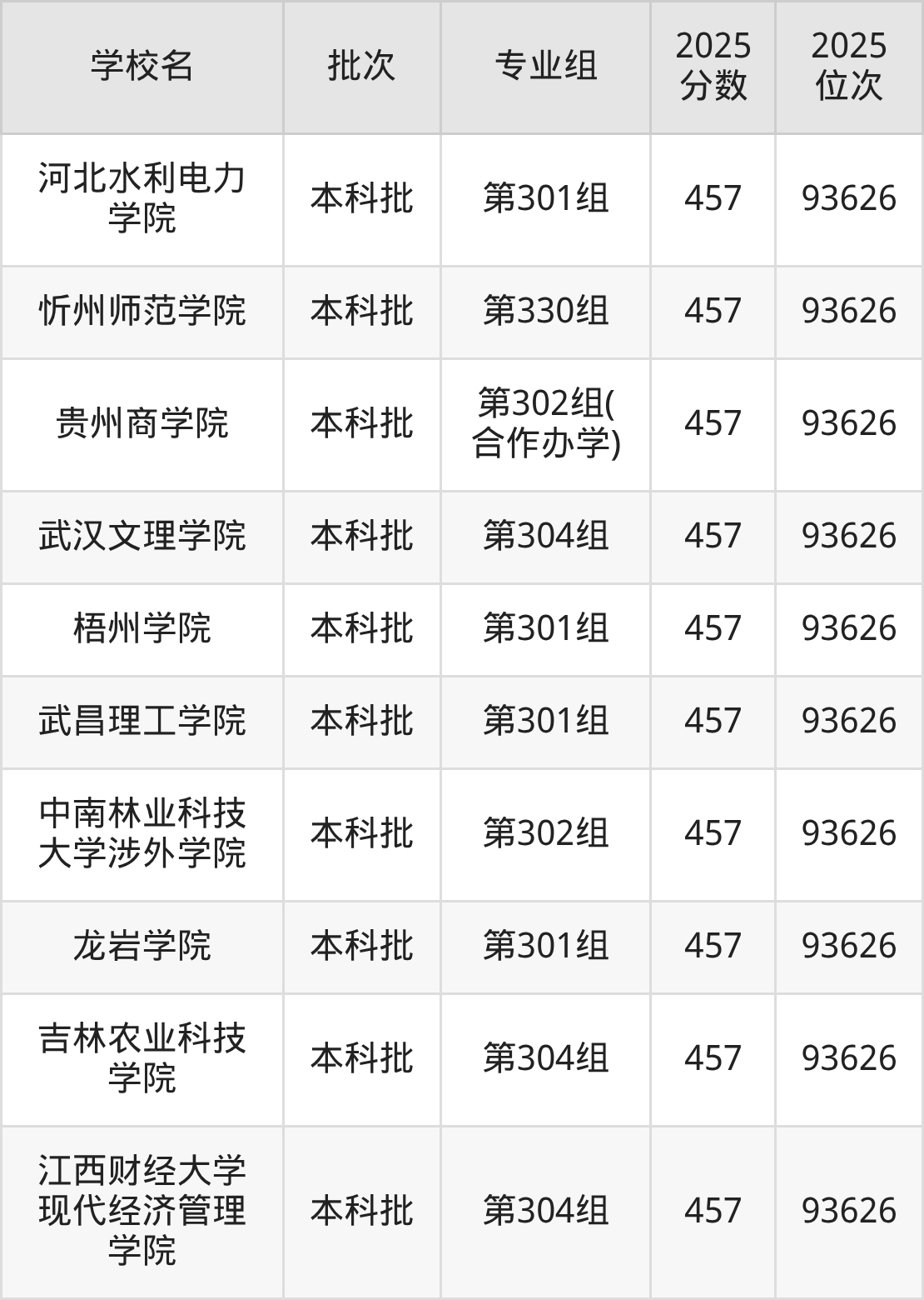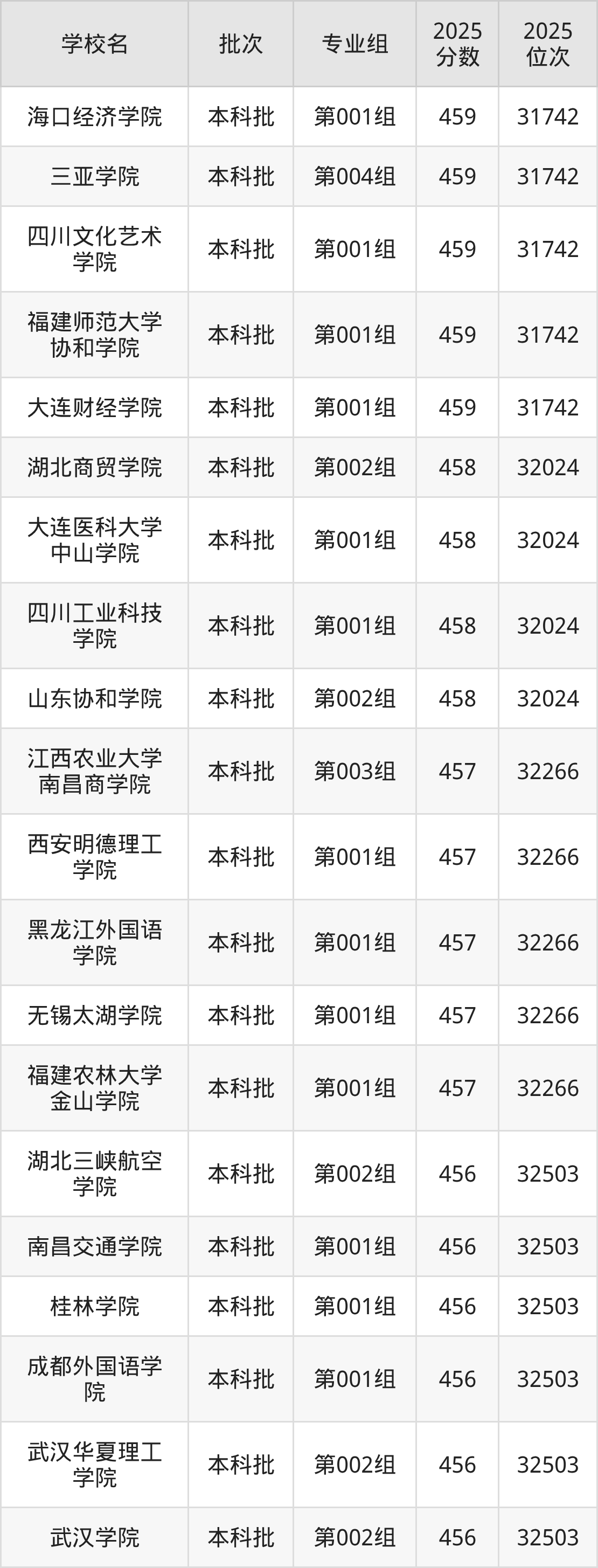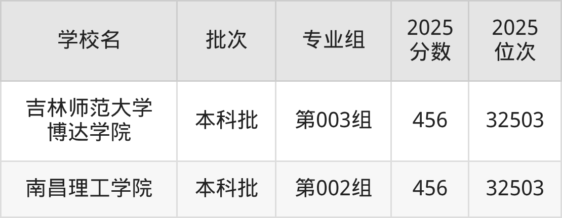 2025年山西高考历史类457分(32025名~32266名)能上的大学有黑龙江外国语学院第001组、无锡太湖学院第001组、福建农林大学金山学院第001组、江西农业大学南昌商学院第003组等。