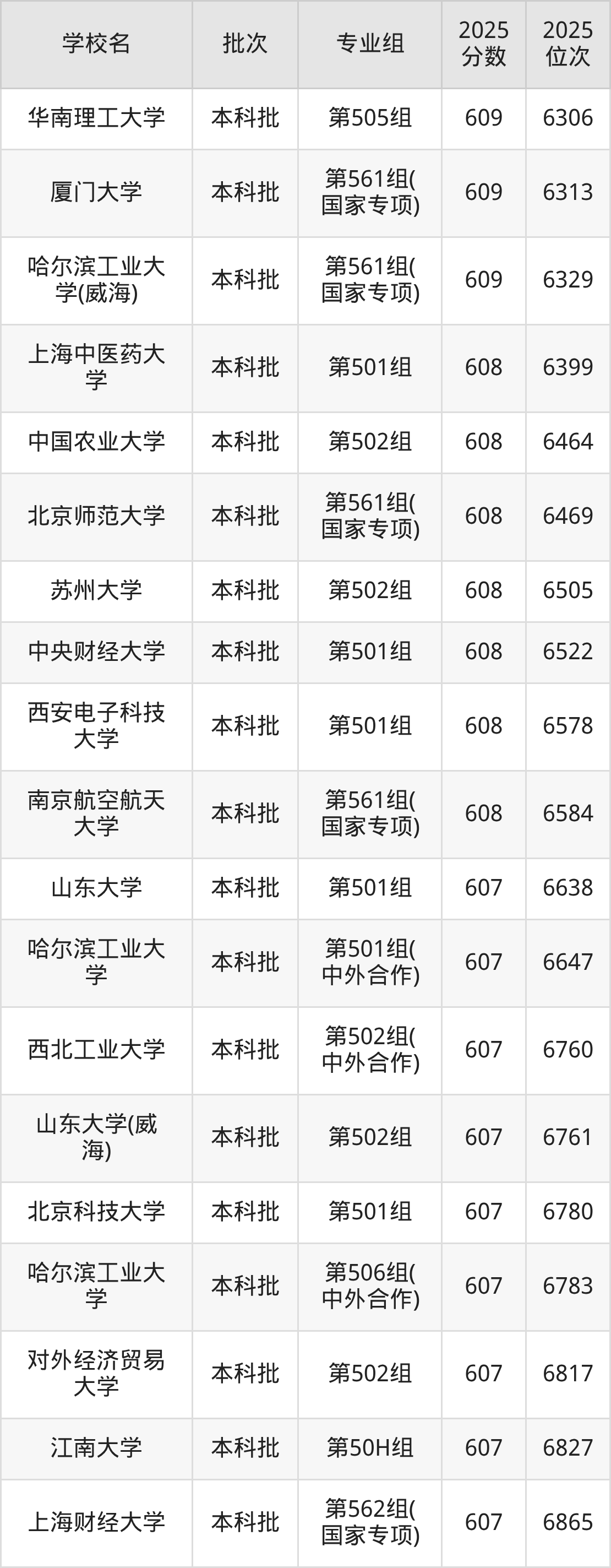 2025年江西高考物理类609分(6136名~6383名)能上的大学有华东师范大学第561组(国家专项)、厦门大学第561组(国家专项)、哈尔滨工业大学(威海)第561组(国家专项)、湖南大学第501组等。