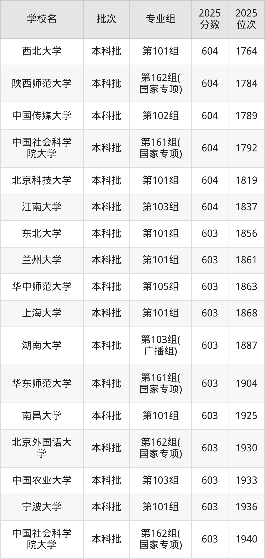 这些都是2026年高考物理类6136名~6383名考生可以报考的大学,更多学校名单如下表所示: