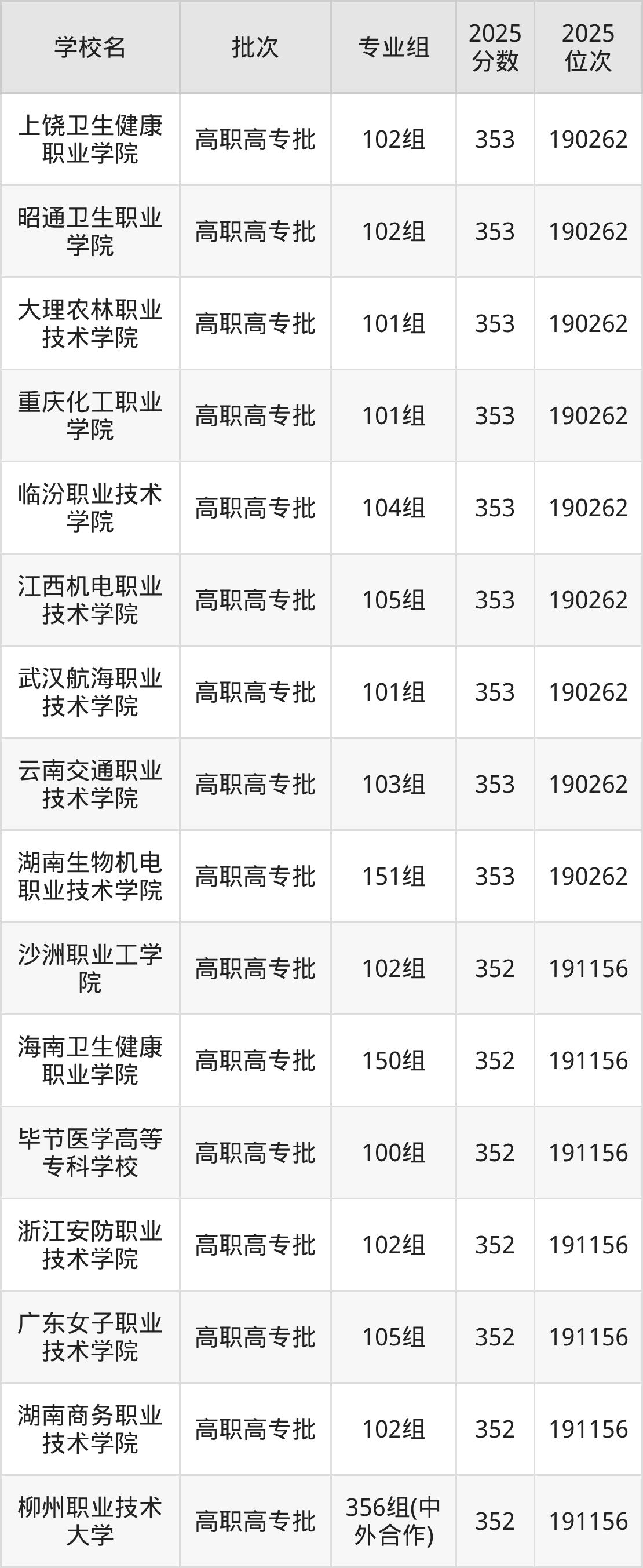2025年广西高考物理类352分(190263名~191156名)能上的大学有沙洲职业工学院102组、柳州职业技术大学356组(中外合作)、湖南商务职业技术学院102组、广东女子职业技术学院105组等。